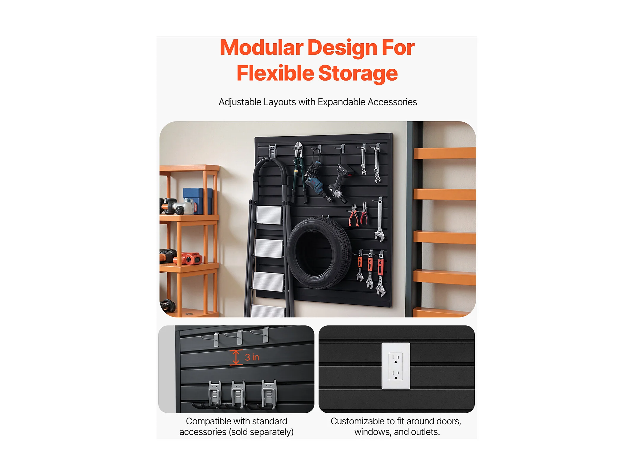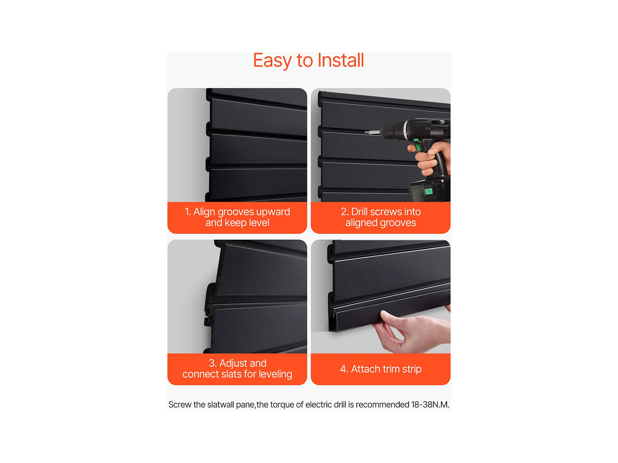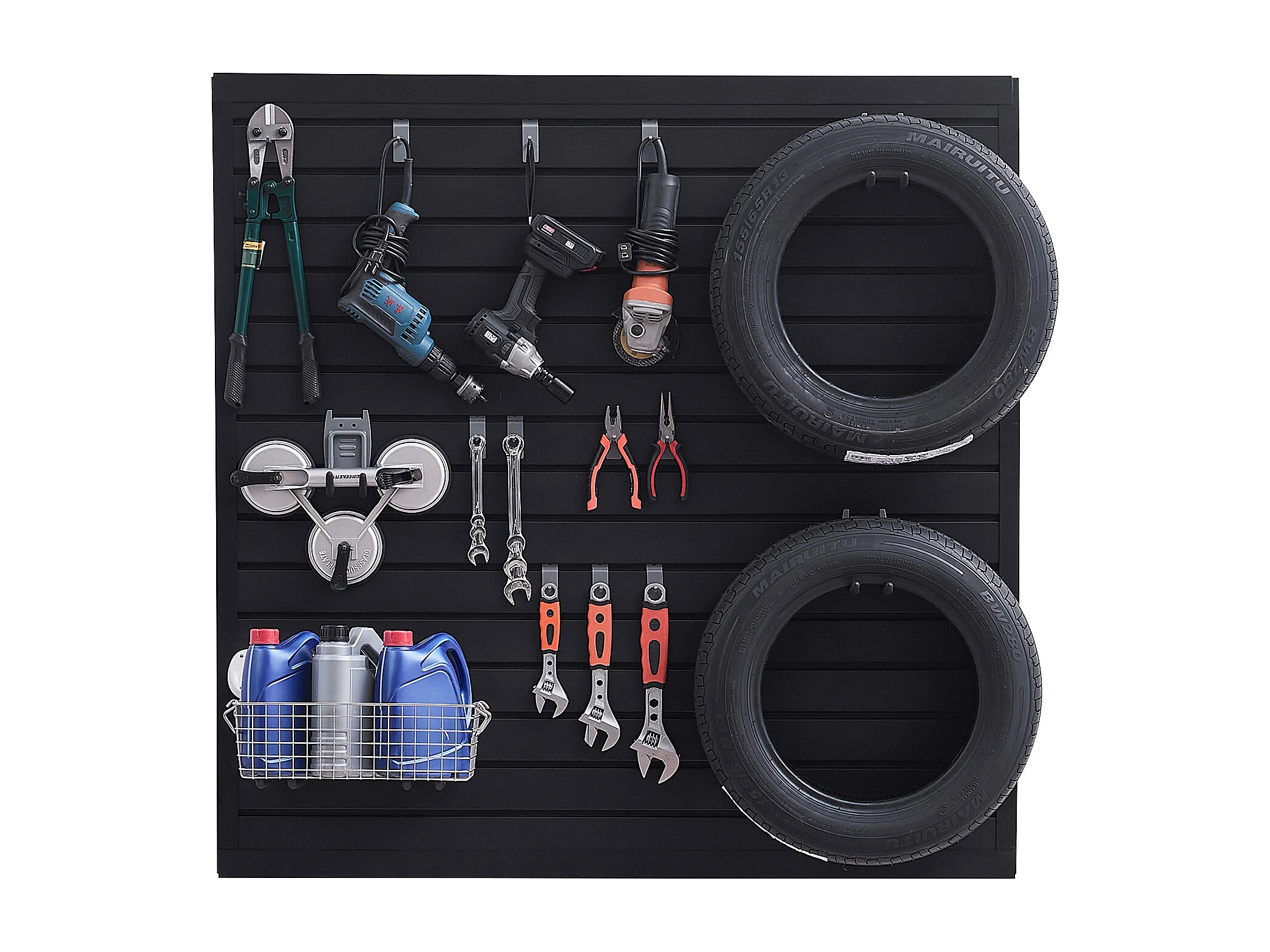 Panneau Mural à Lattes SucceBuy, 122 x 122 cm, Lattes de Garage en PVC Noir, Conception Modulaire