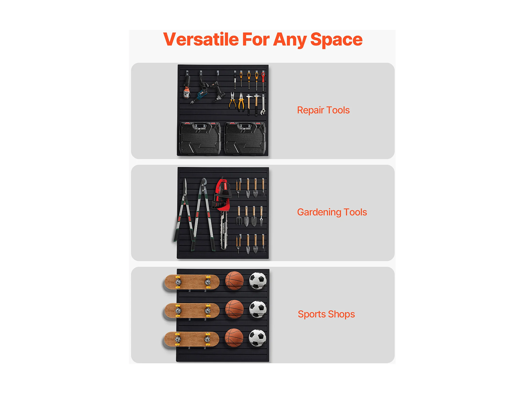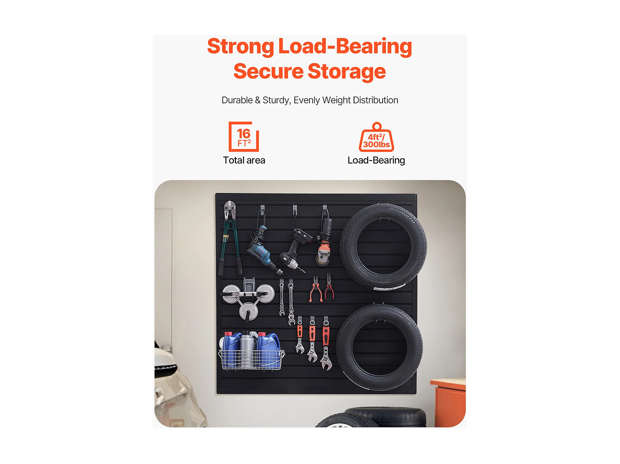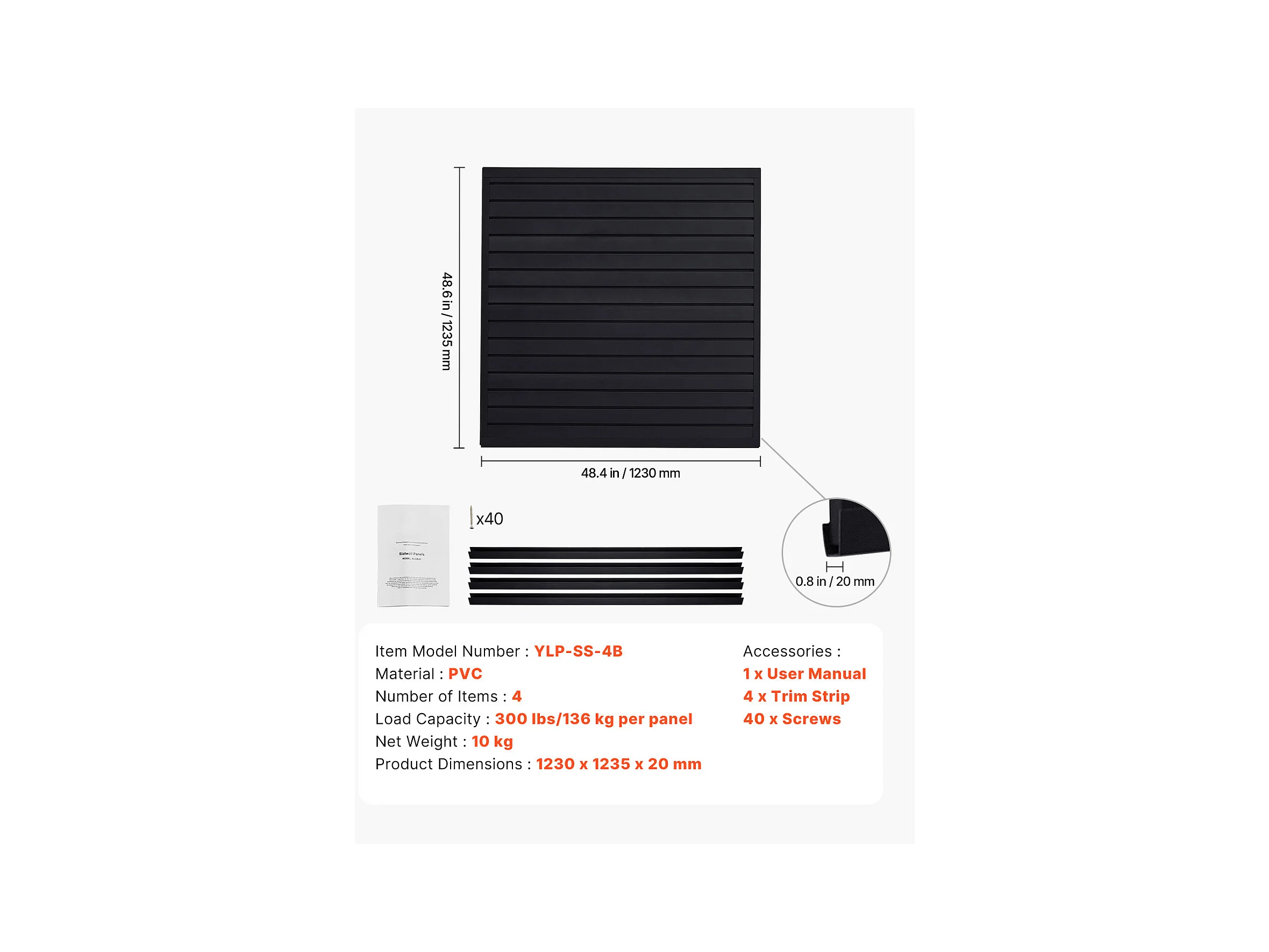 Panneau Mural à Lattes SucceBuy, 122 x 122 cm, Lattes de Garage en PVC Noir, Conception Modulaire
