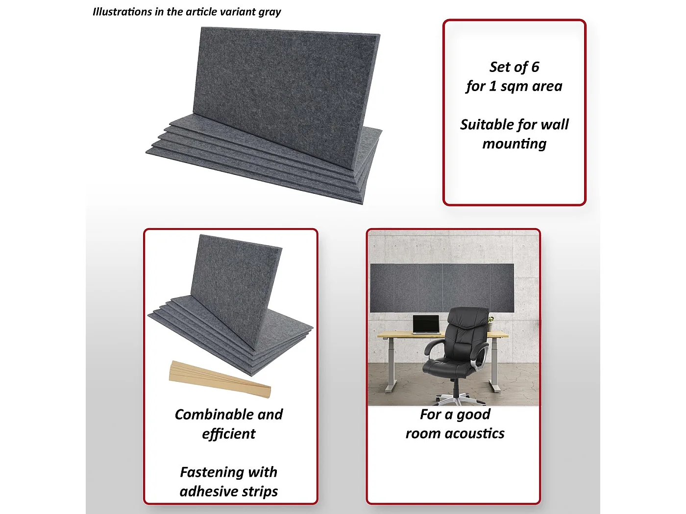 Panneau mural acoustique MCW-L52 (set de 6), gris clair