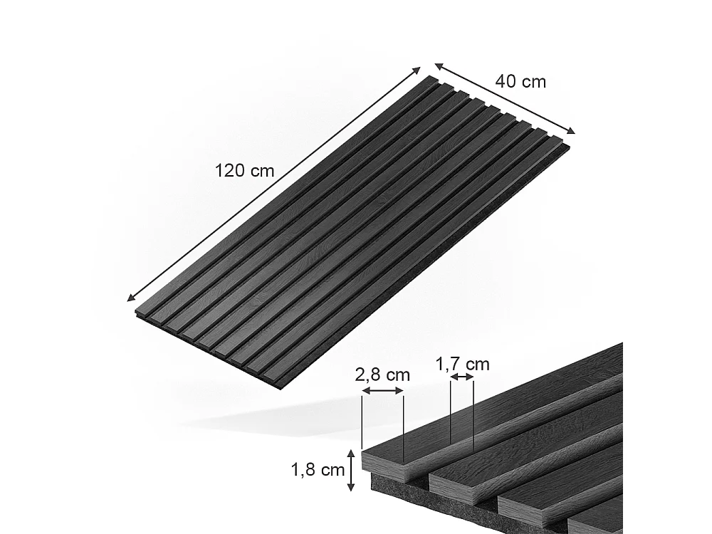 Panneau mural noir 120x1.8x40 akustikpaneel