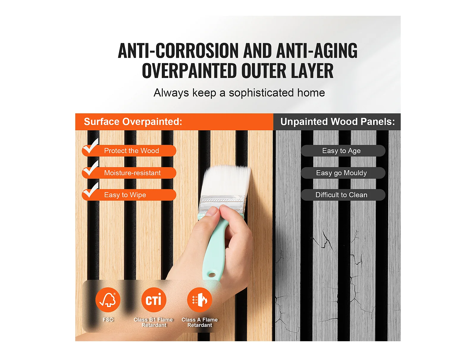Panneaux Acoustiques à Lattes de Bois SucceBuy 120 x 60 cm, Décor Moderne, Chêne Noir, pour une Décoration Moderne, Réduction du Bruit