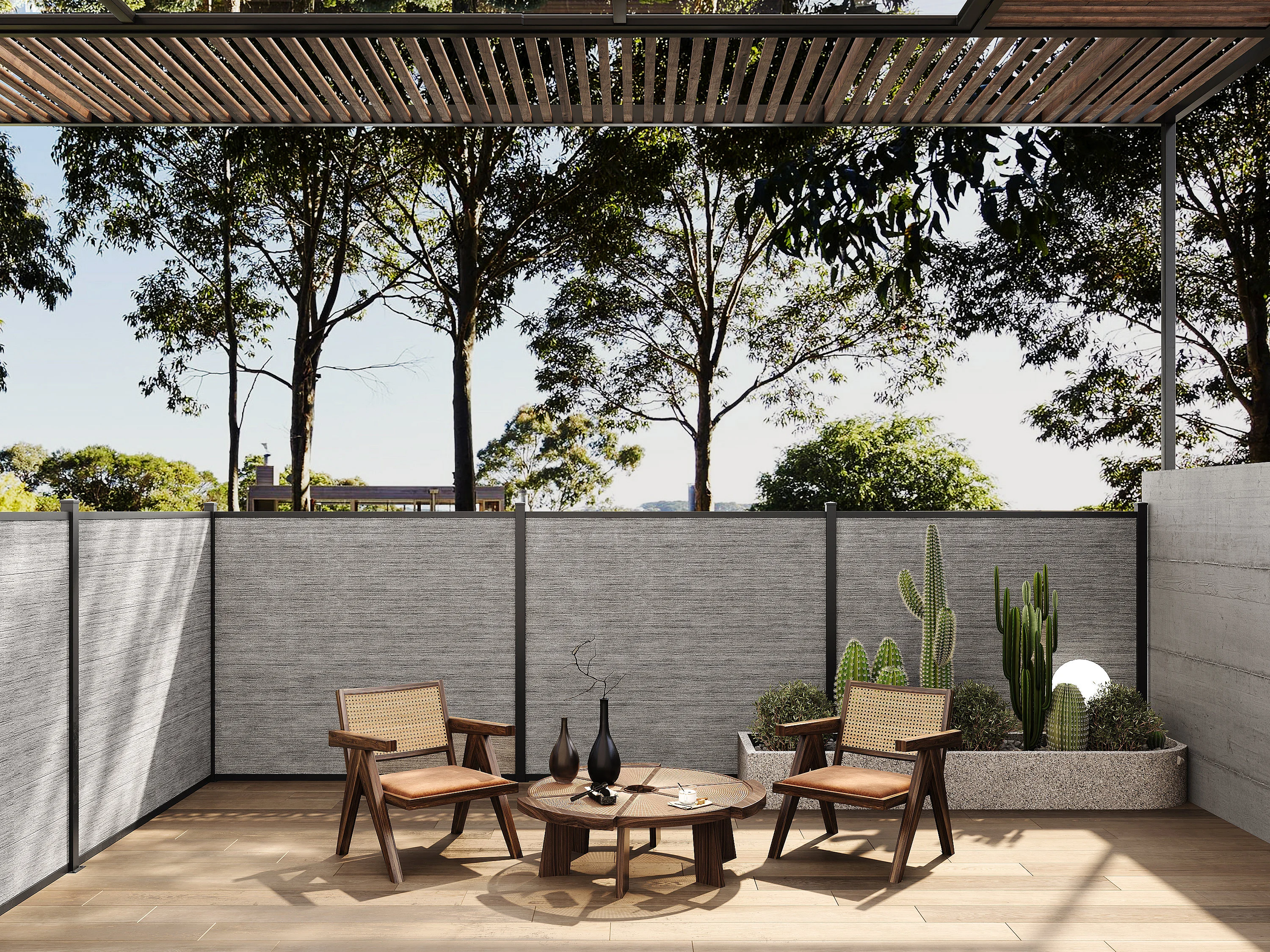 Clôture à poser H 181 cm - Kit de 7 lames en composite + 2 poteaux gris clair - ENOLA