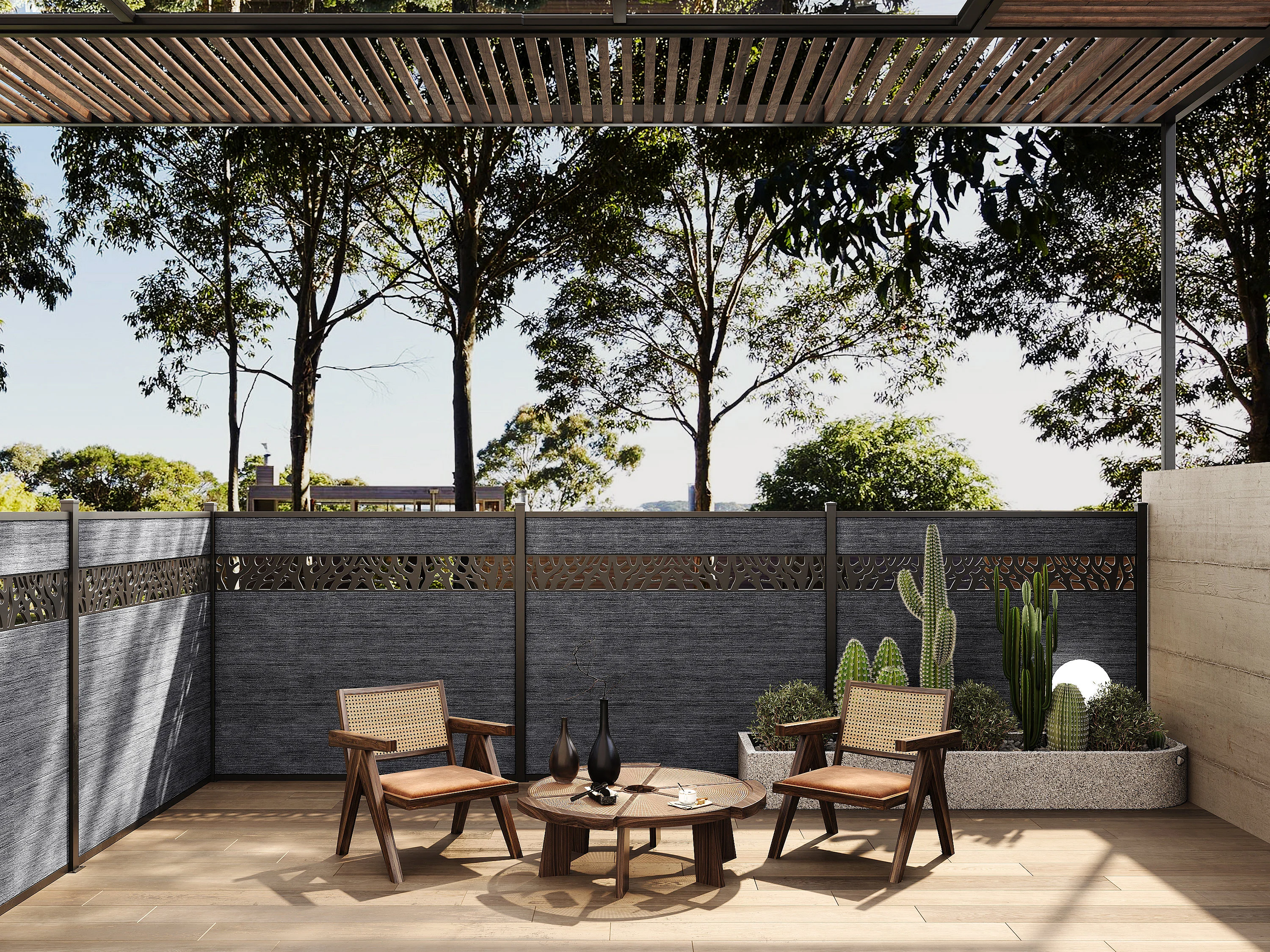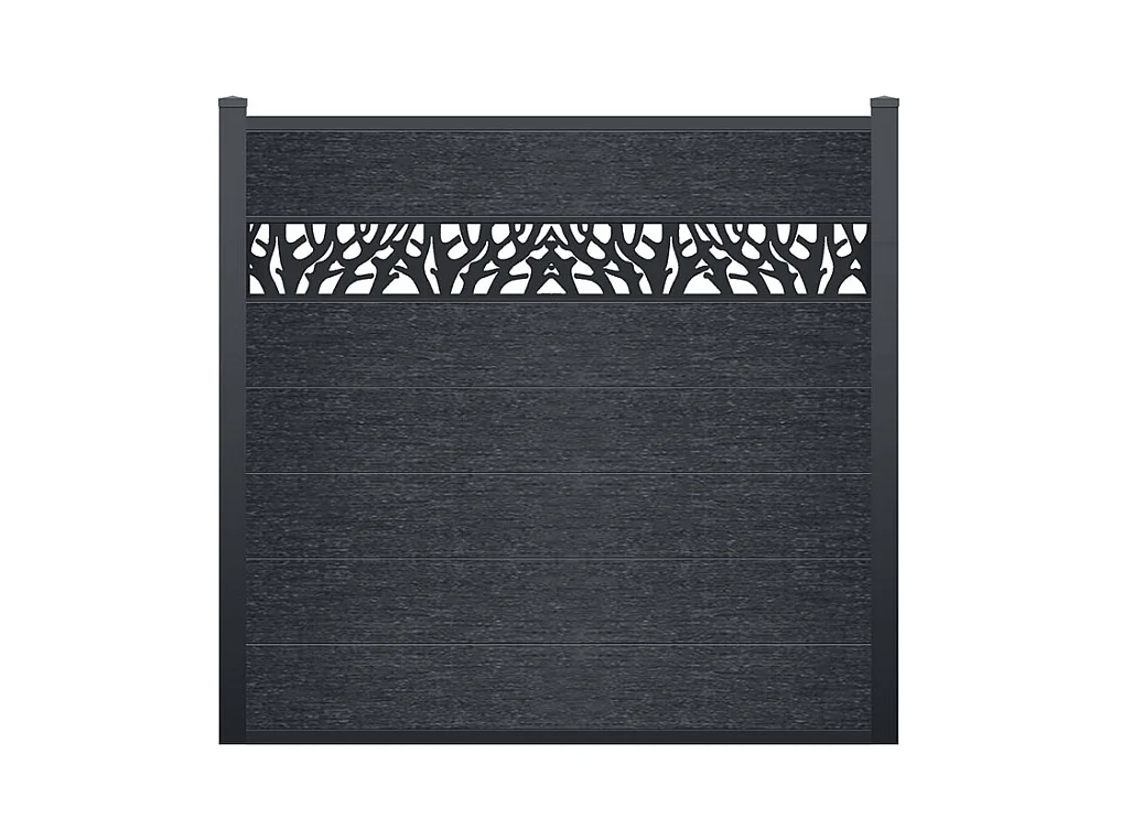 Clôture à poser H 181 cm - Kit 7 lames en composite avec décor + 2 poteaux anthracite - ENOLA