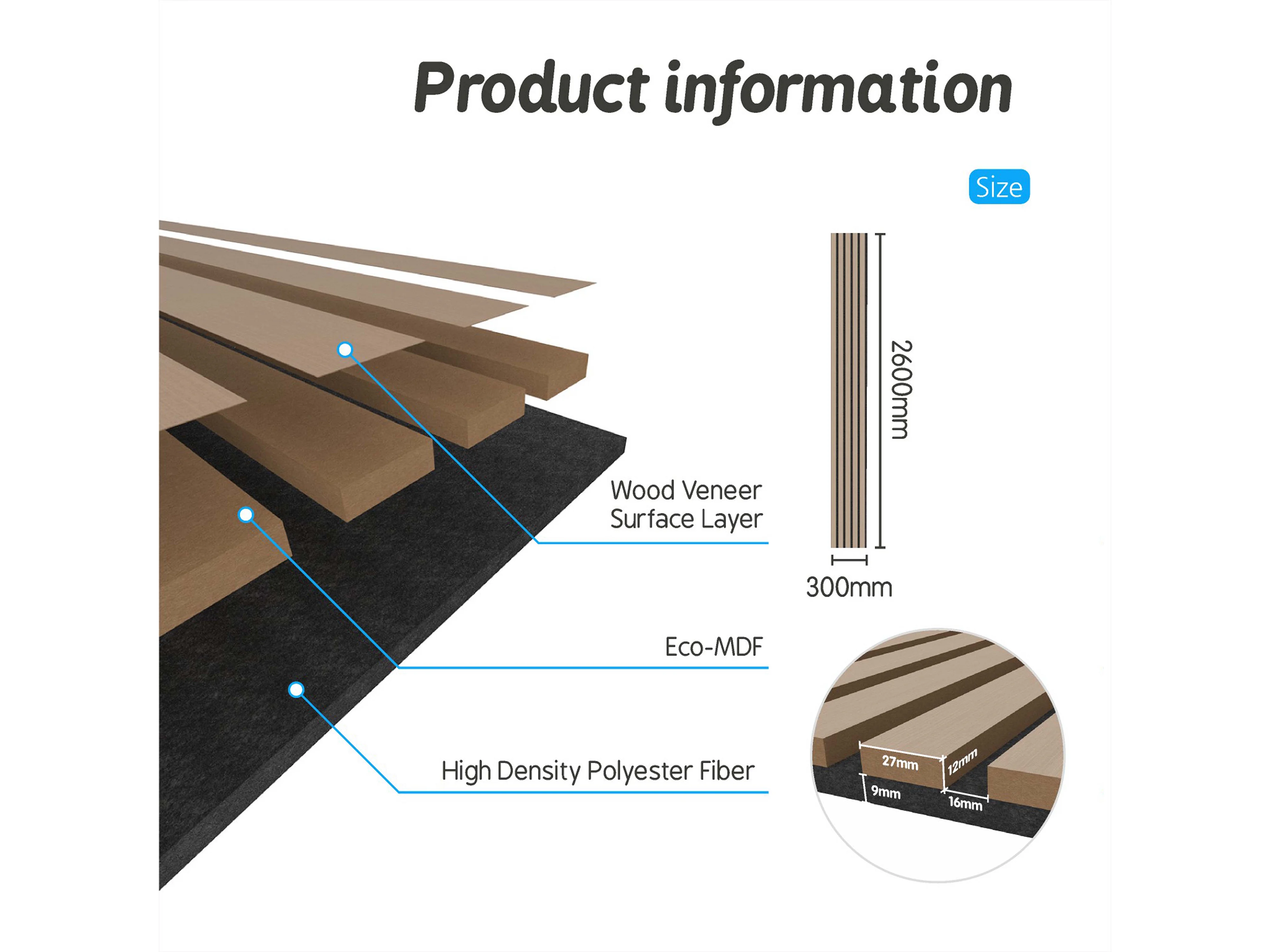 Panneaux décoratifs AICA, panneaux muraux en MDF imitation bois, lot de 3, 260 x 30 cm, couleur chêne clair