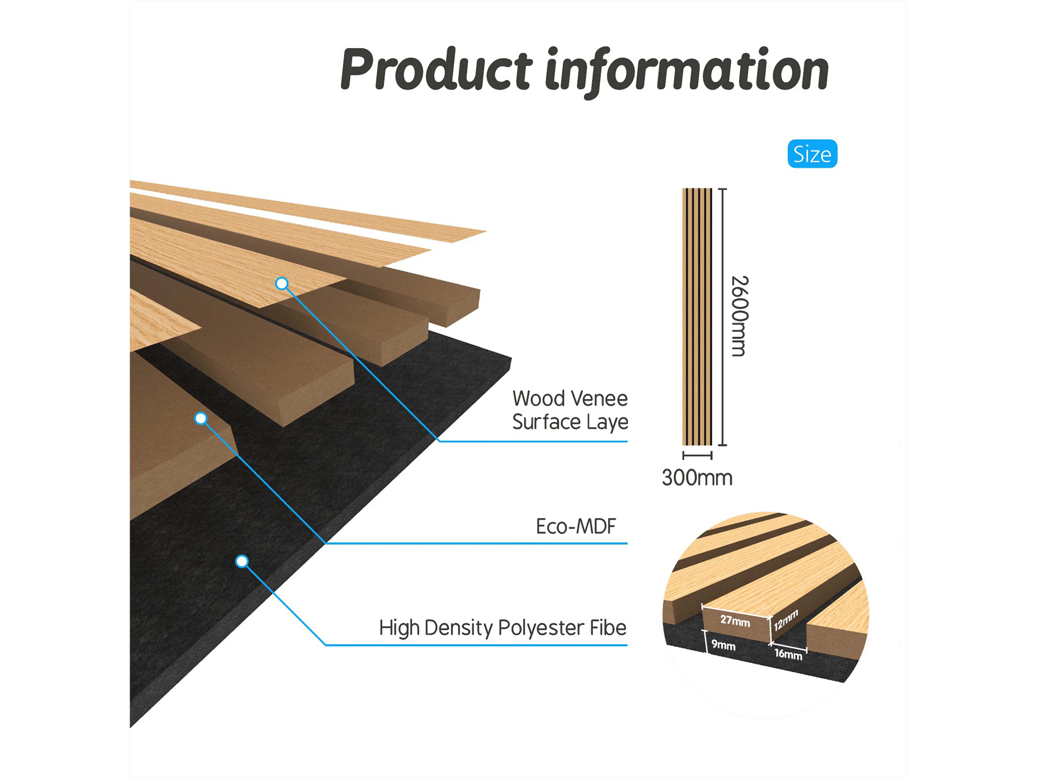 Panneaux décoratifs AICA, panneaux muraux en MDF imitation bois, lot de 3, 260 x 30 cm, Teinte chêne foncé