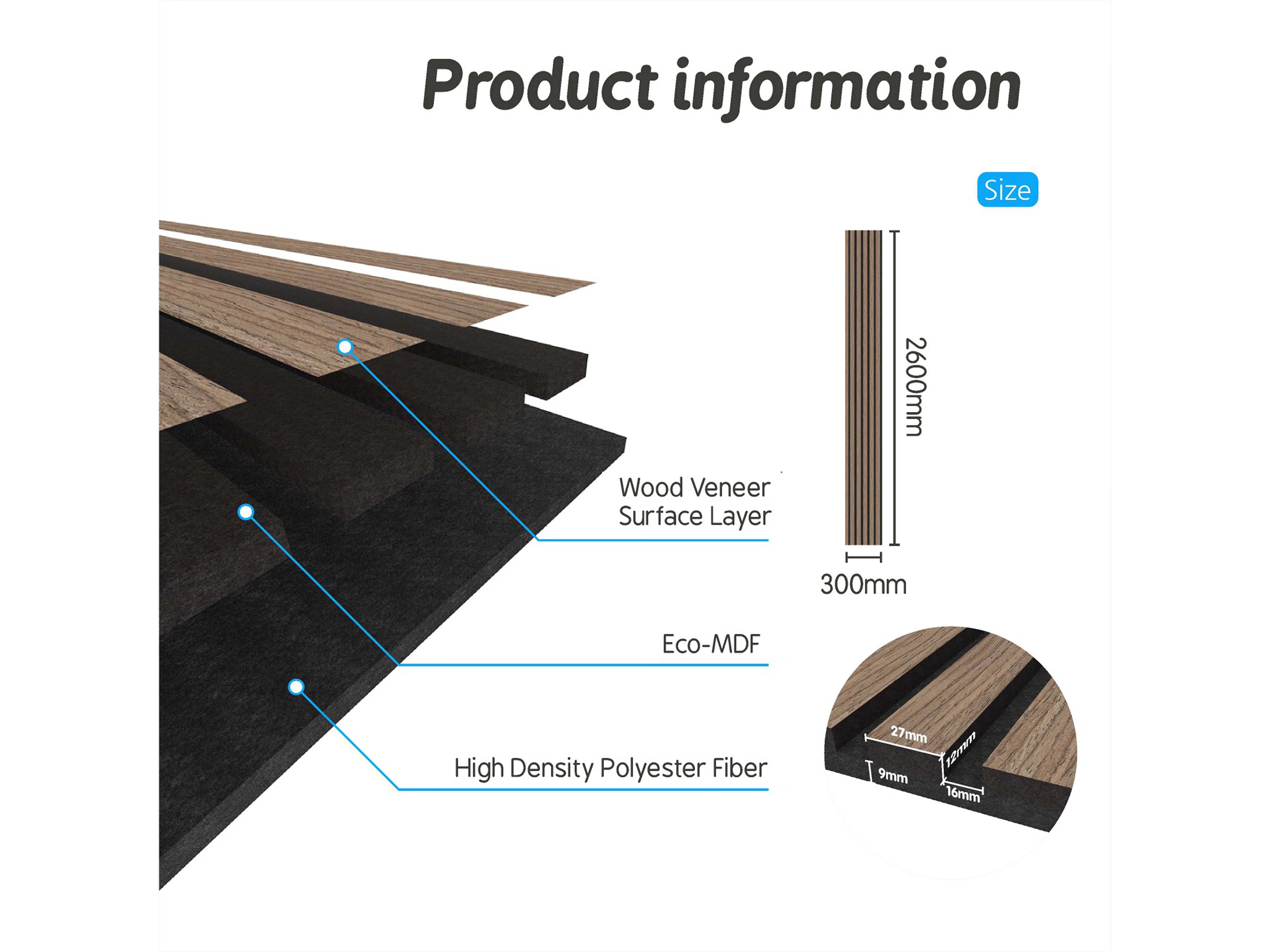 Panneaux décoratifs AICA, panneaux muraux en MDF imitation bois, lot de 3, 260 x 30 cm, Teinte chêne noyer