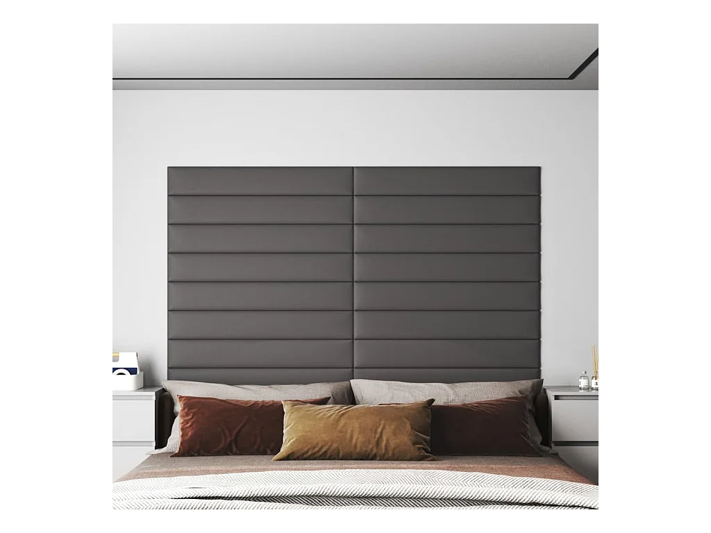 Panneaux muraux 12 pcs Gris 90x30 cm Similicuir 3,24 m² FR499948