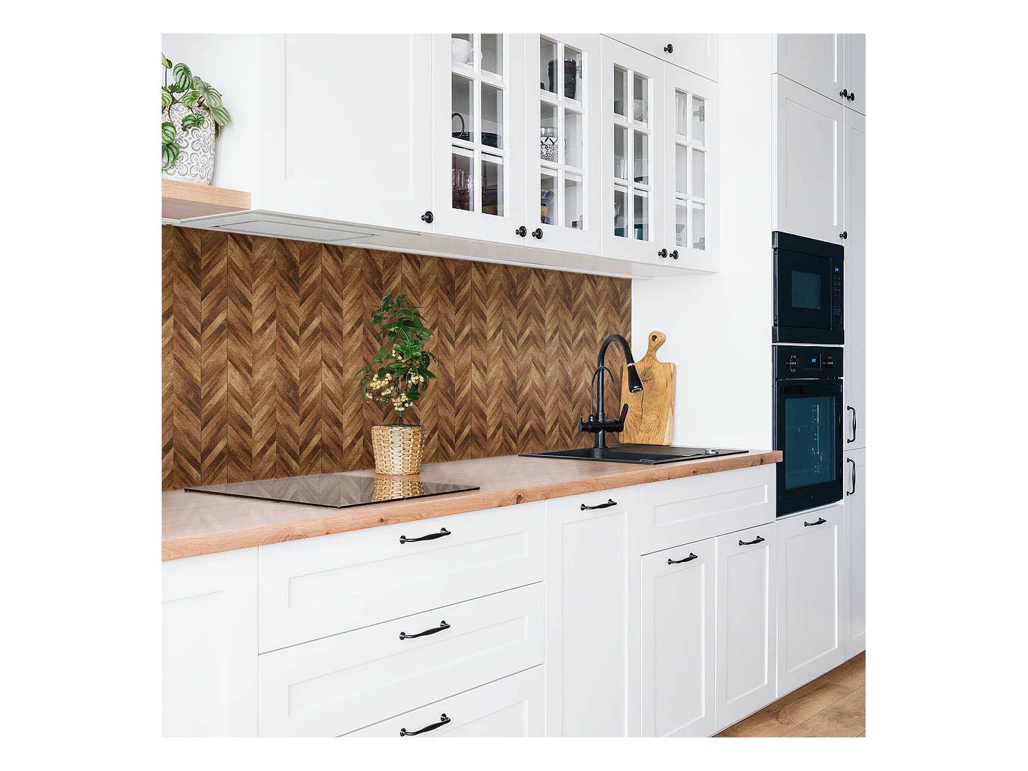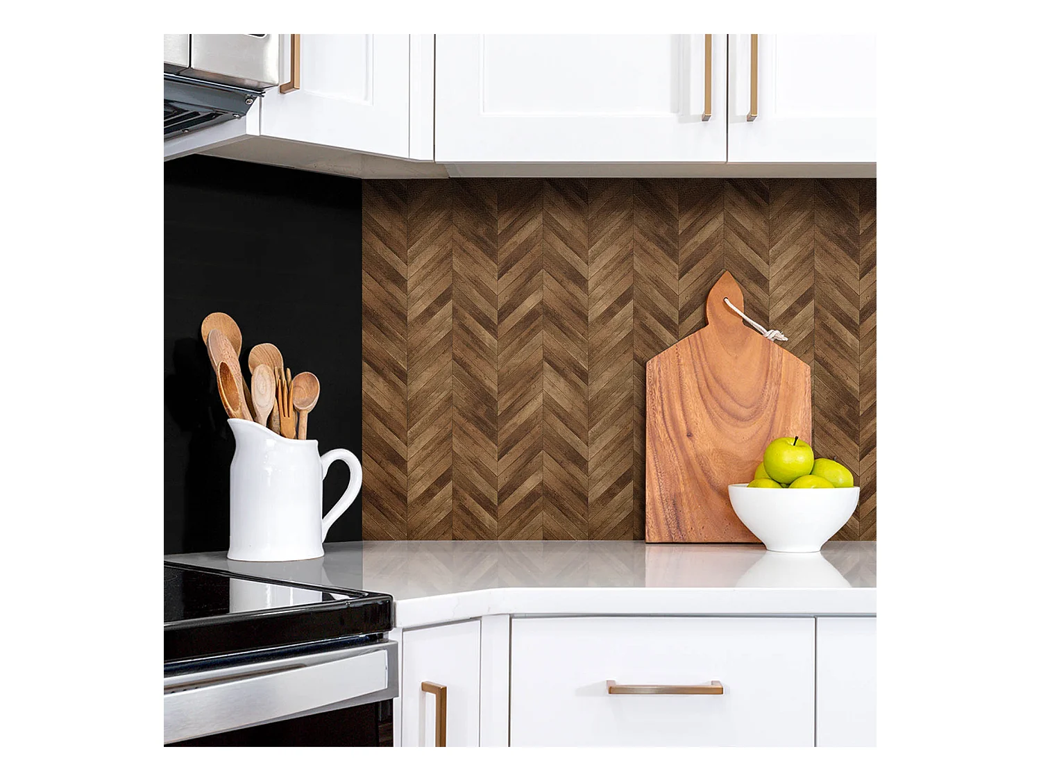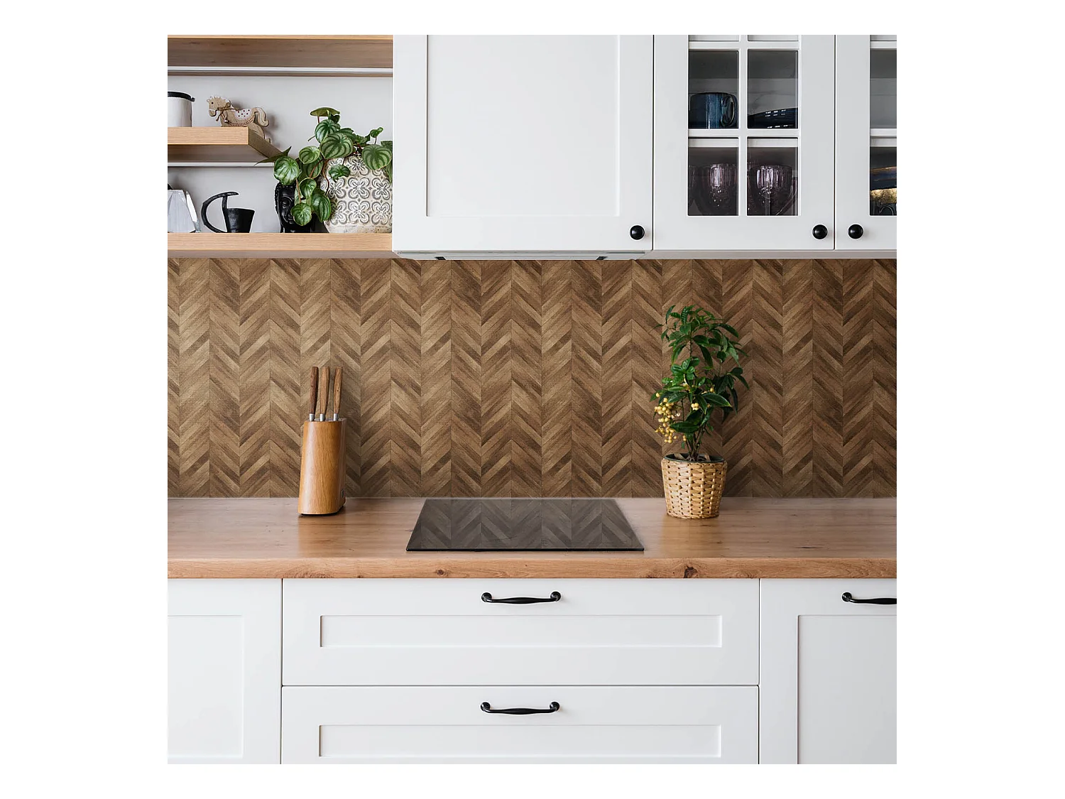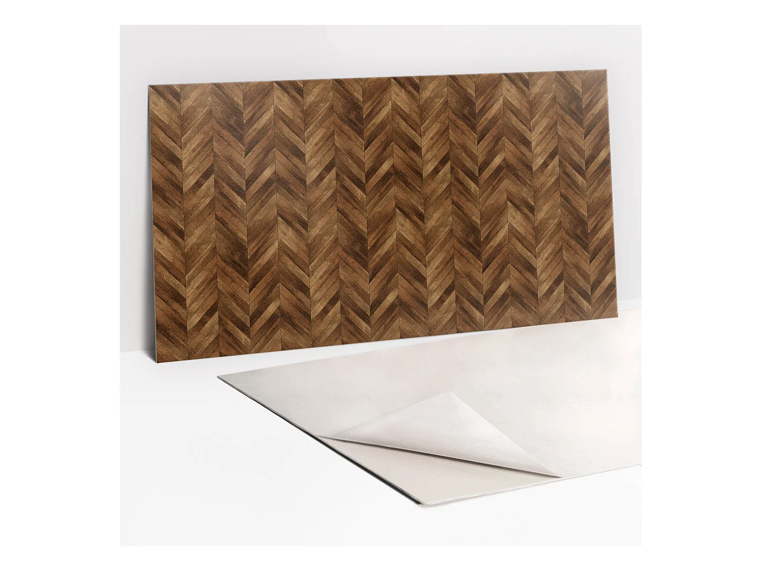 Panneaux muraux autocollants en vinyle imperméable - 100x50 cm - Motif à chevrons en bois