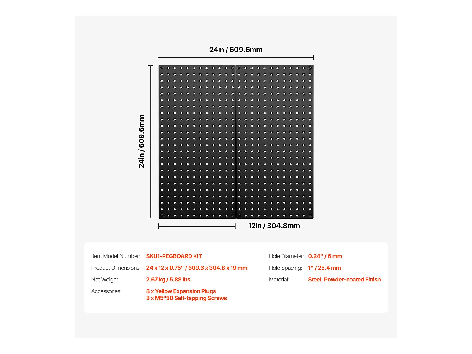 Panneaux Perforés en Métal SucceBuy, 2 Panneaux, 609,6x304,8 mm, pour Outils de Garage