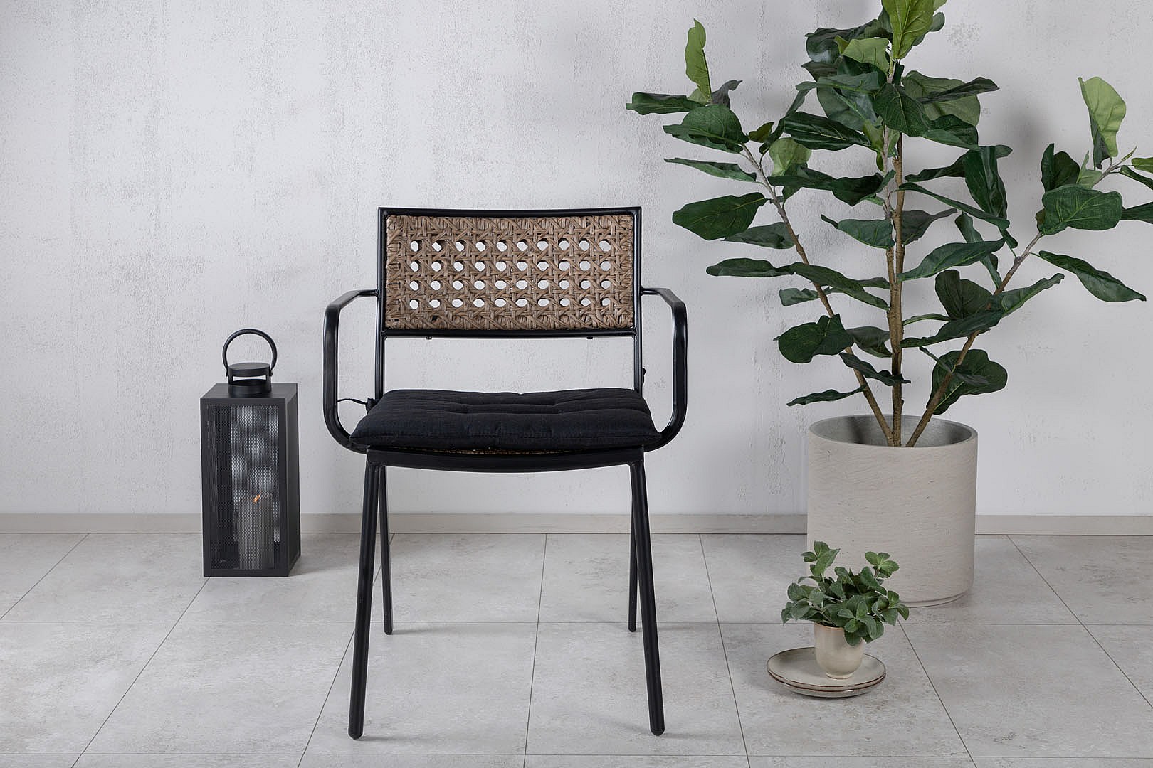 Lamira Chaise de jardin, noir et accoudoirs en teck.