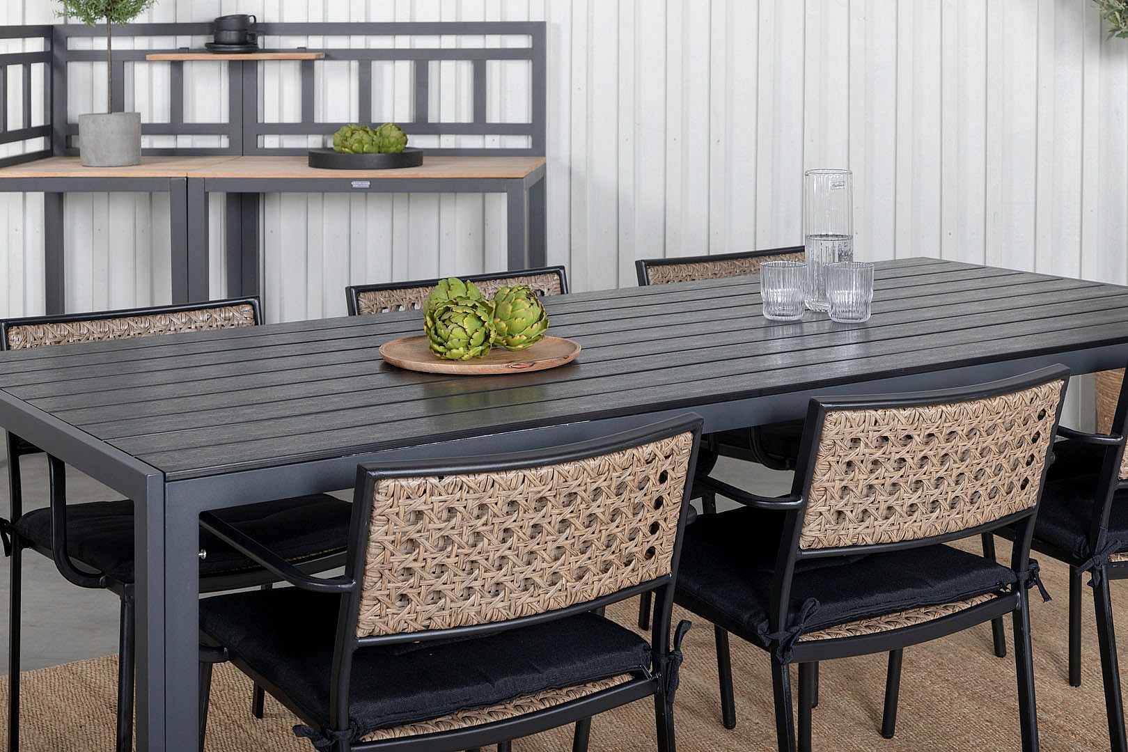 Paola Chaise de jardin avec support d'assise, empilable, noir, naturel.