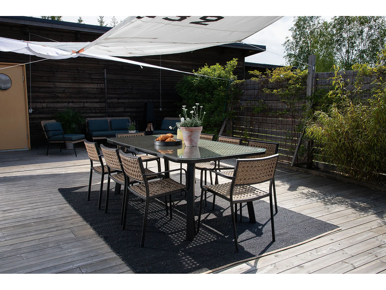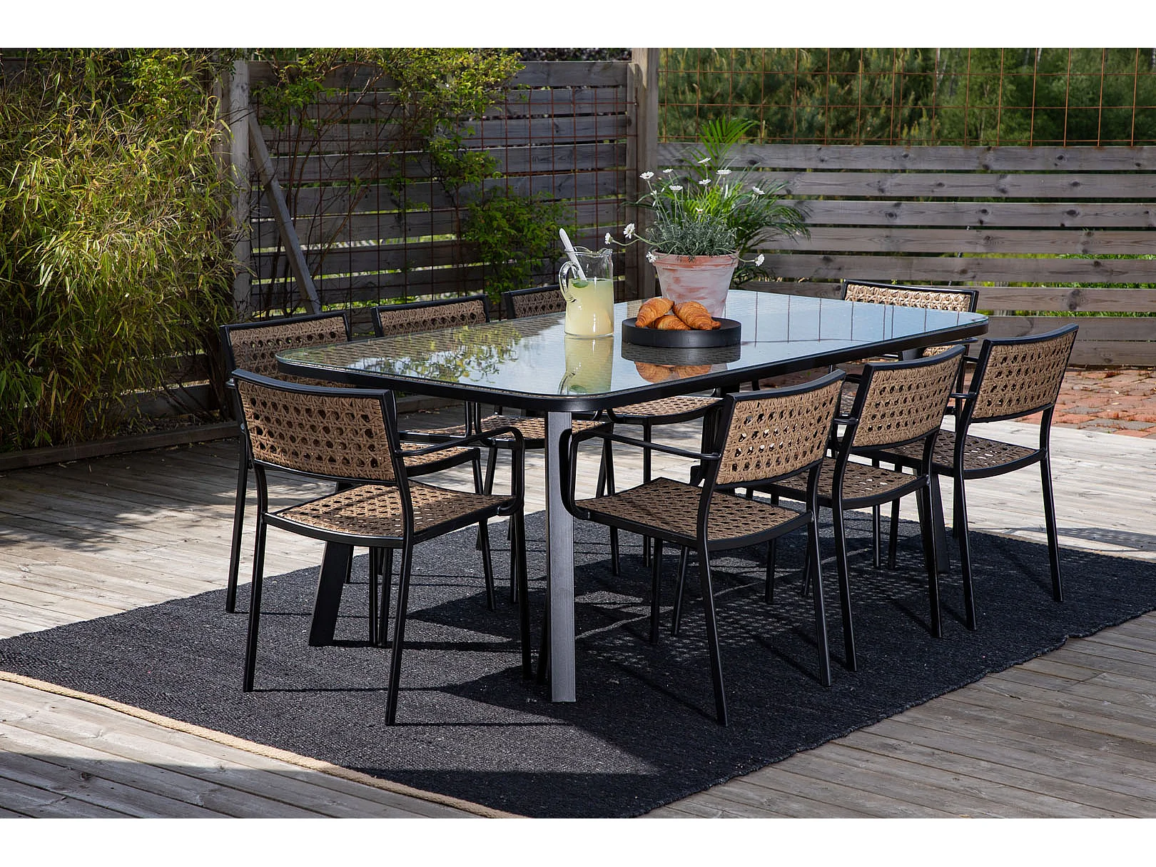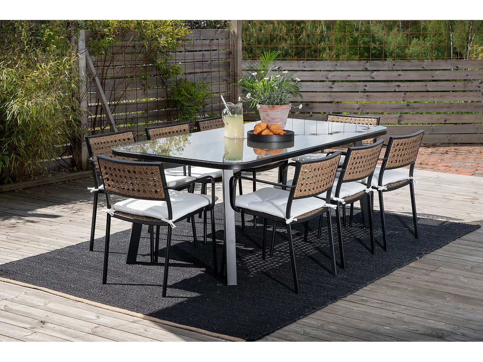 Paola Ensemble table et chaises de jardin, table 100x200cm et 8 chaises Paola, noir, naturel.