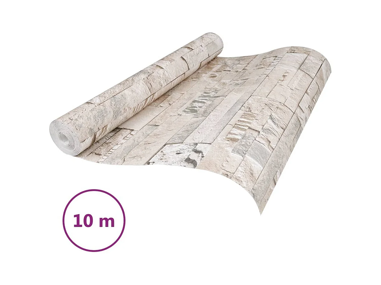 Papier peint 3D aspect de pierre crème 10x0,53 m non tissé FR815348