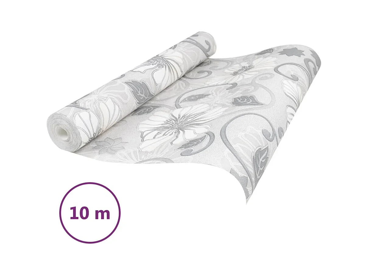 Papier peint 3D motif de fleur gris 10x0,53 m non tissé FR378076