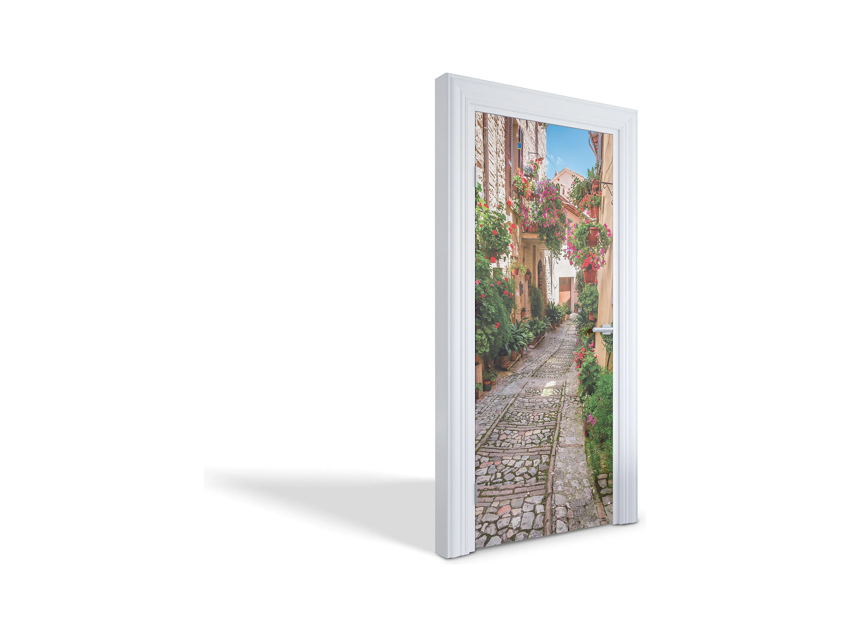 Papier peint photo pour portes intérieures - Charmante rue des fleurs 85x205 cm