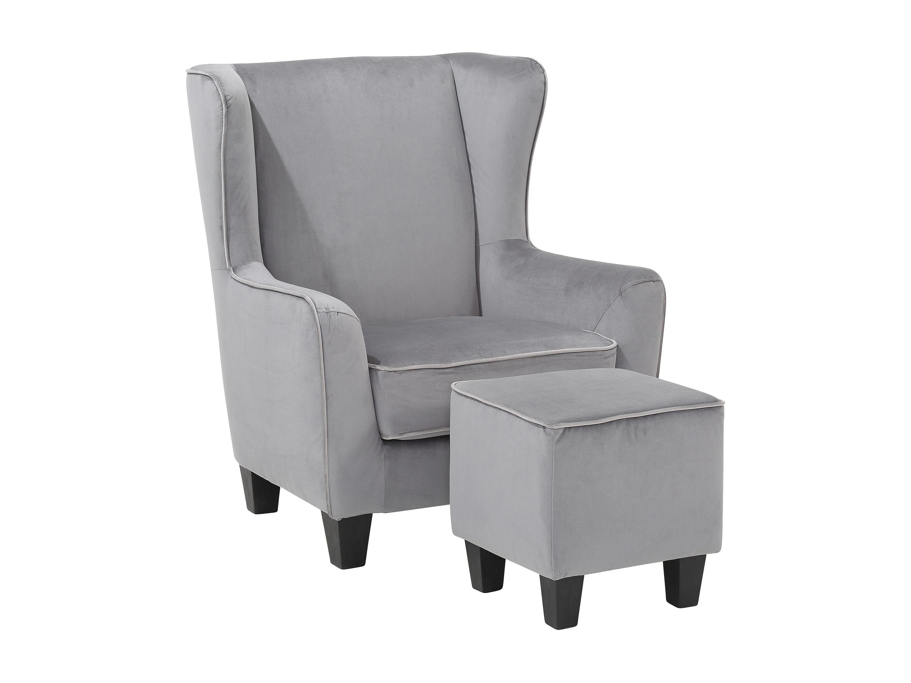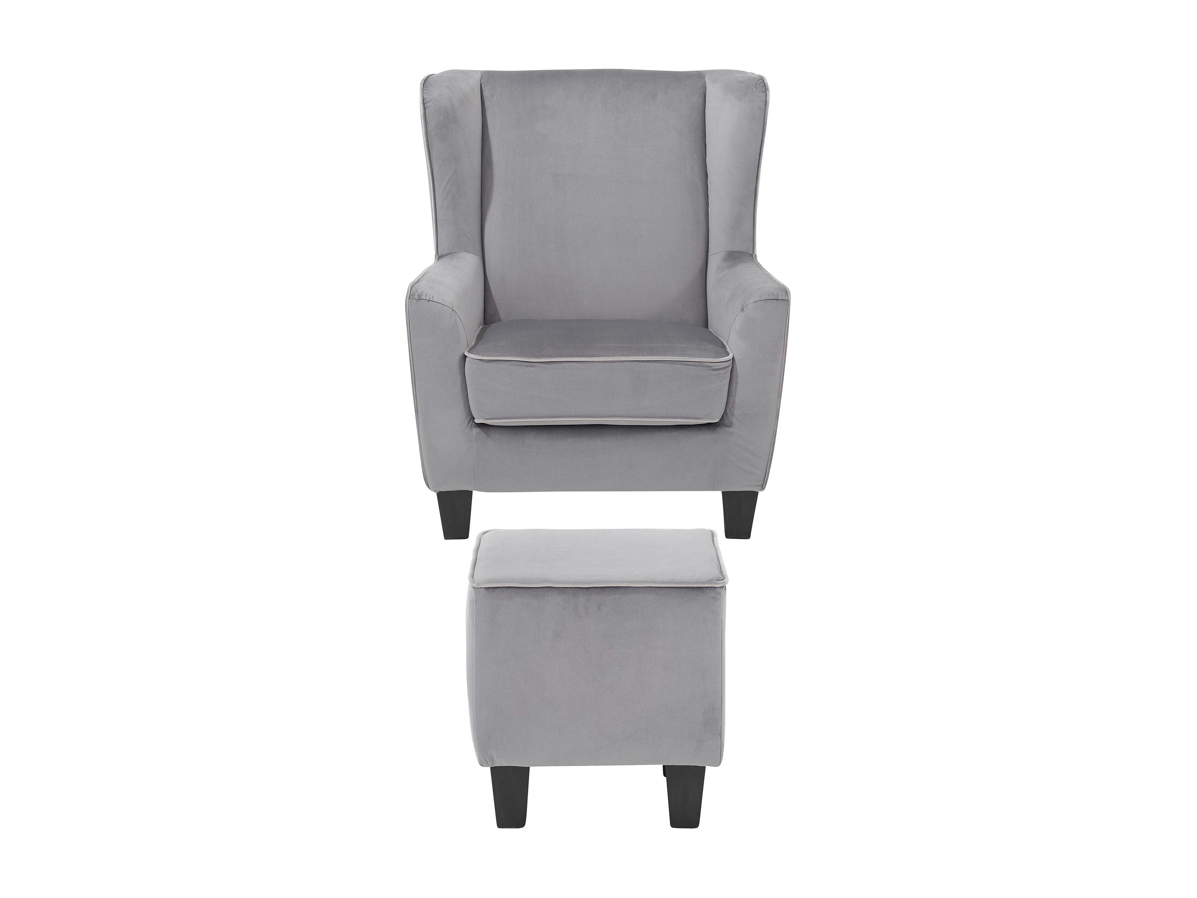 Paprika|Fauteuil + Tabouret Velours Gris Gris clair