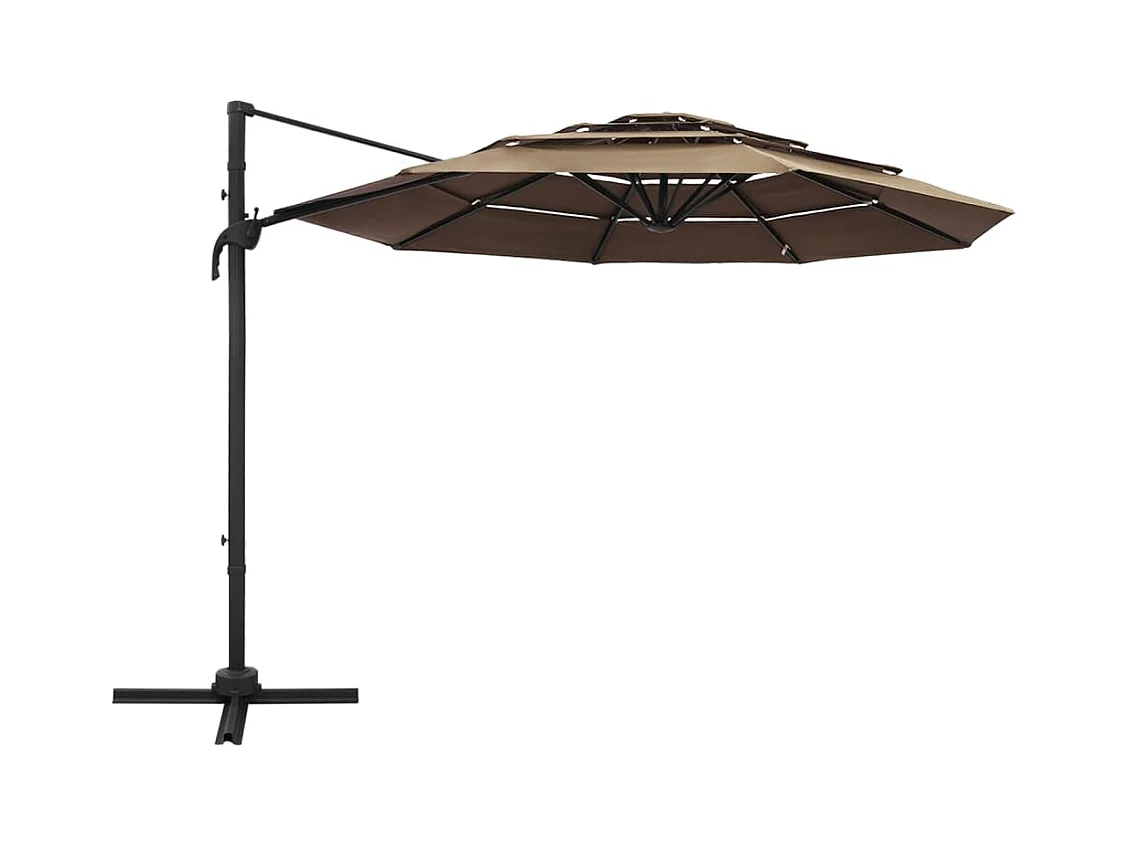 Parasol à 4 niveaux avec mât en aluminium Taupe 3x3 m