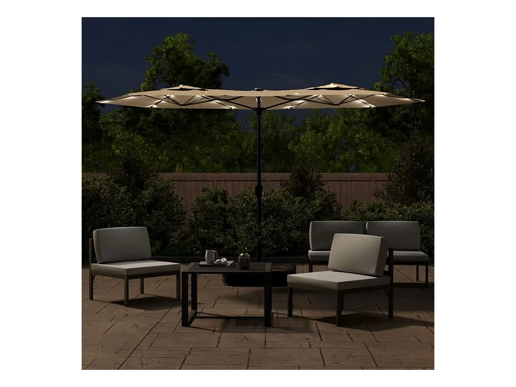 Parasol avec LED et mât en aluminium 300 cm Taupe