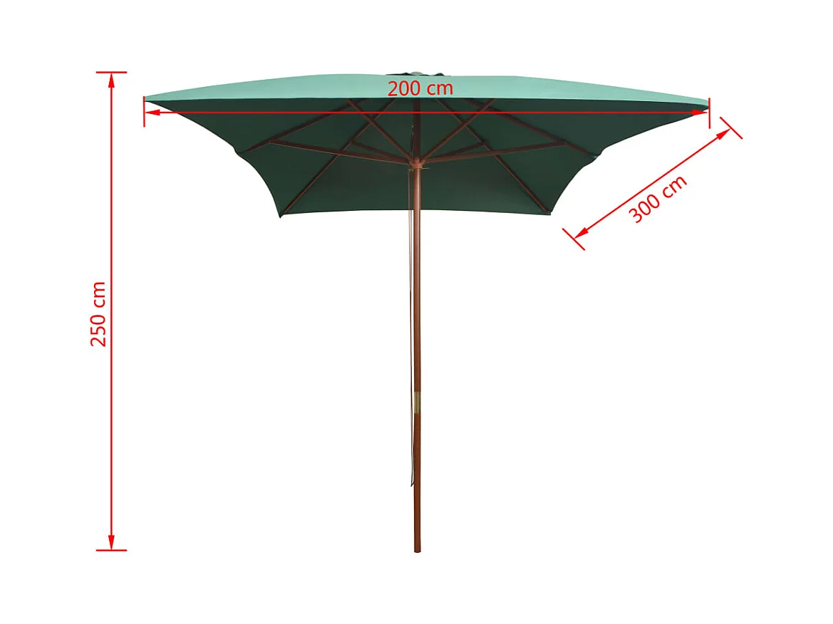 Parasol avec poteau en bois 200 x 300 cm Vert