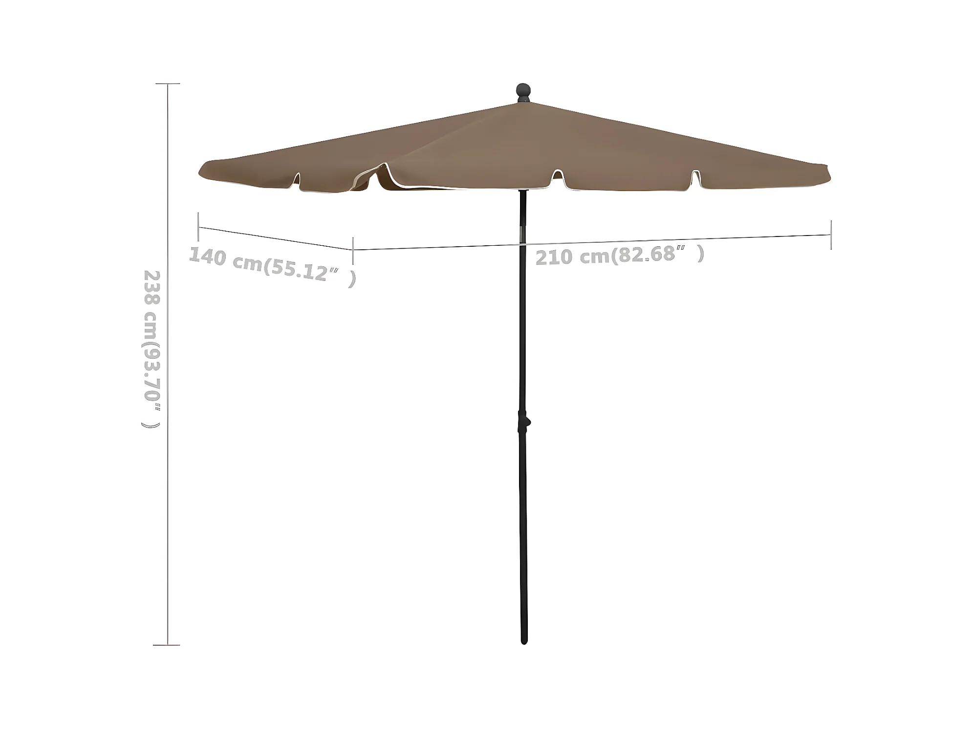 Parasol d'extérieur avec mât en aluminium 180x110 cm Taupe