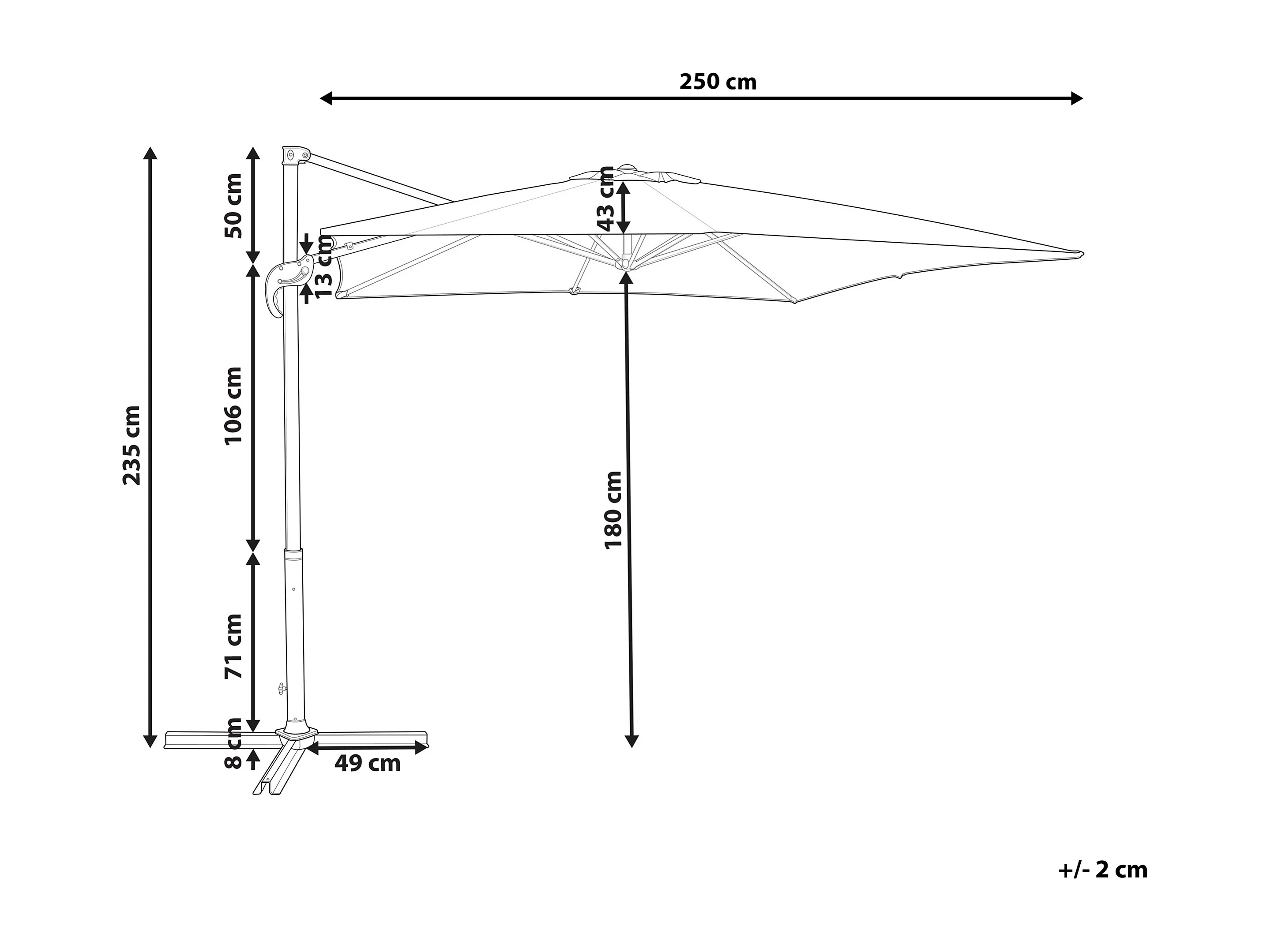 Parasol déporté 250 cm MONZA Gris foncé