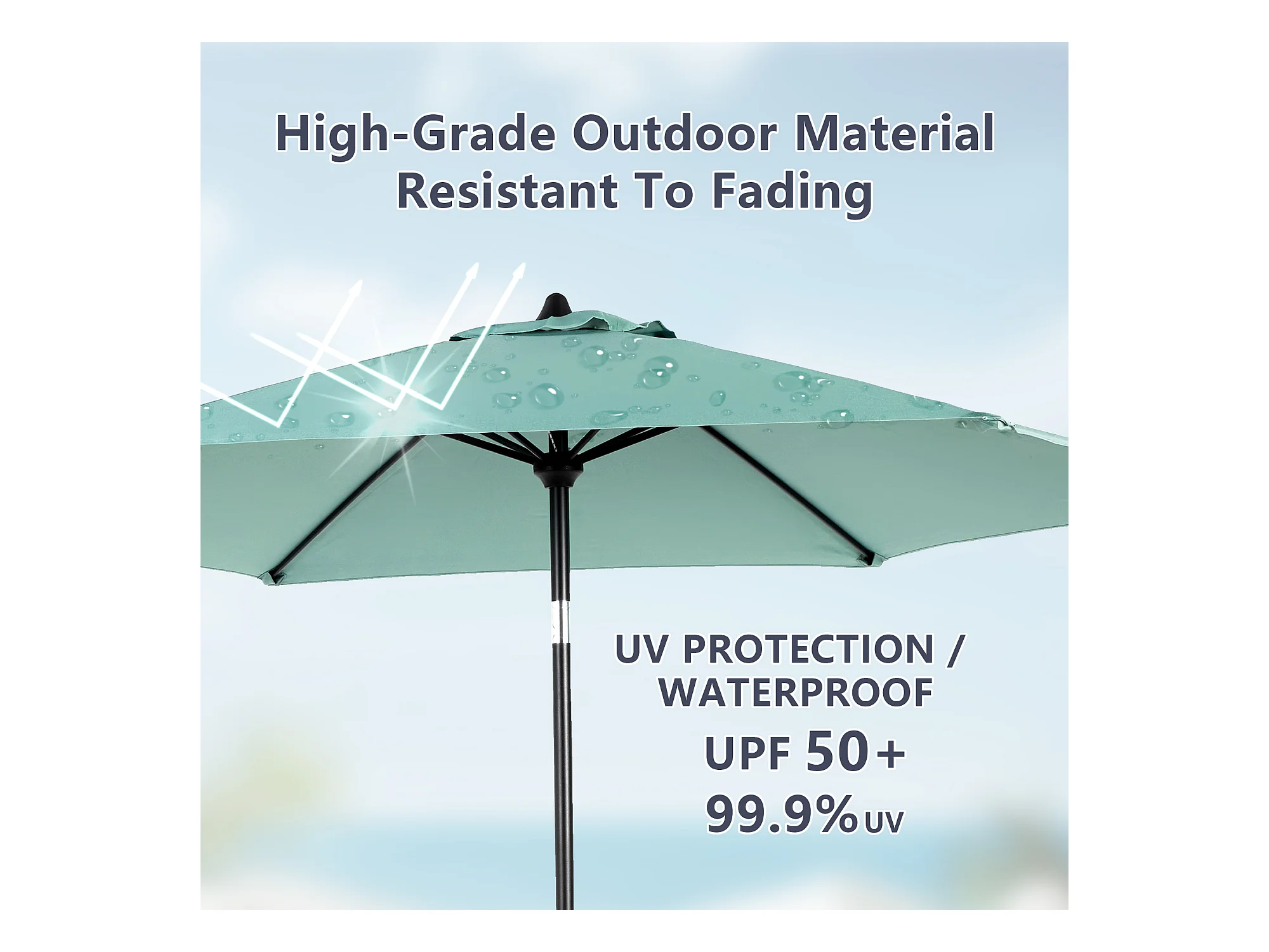 Parasol de jardin vert clair - Parasol extérieur monoposte - Protection solaire UPF 50+ - Grande taille de 264 cm pour terrasse et balcon
