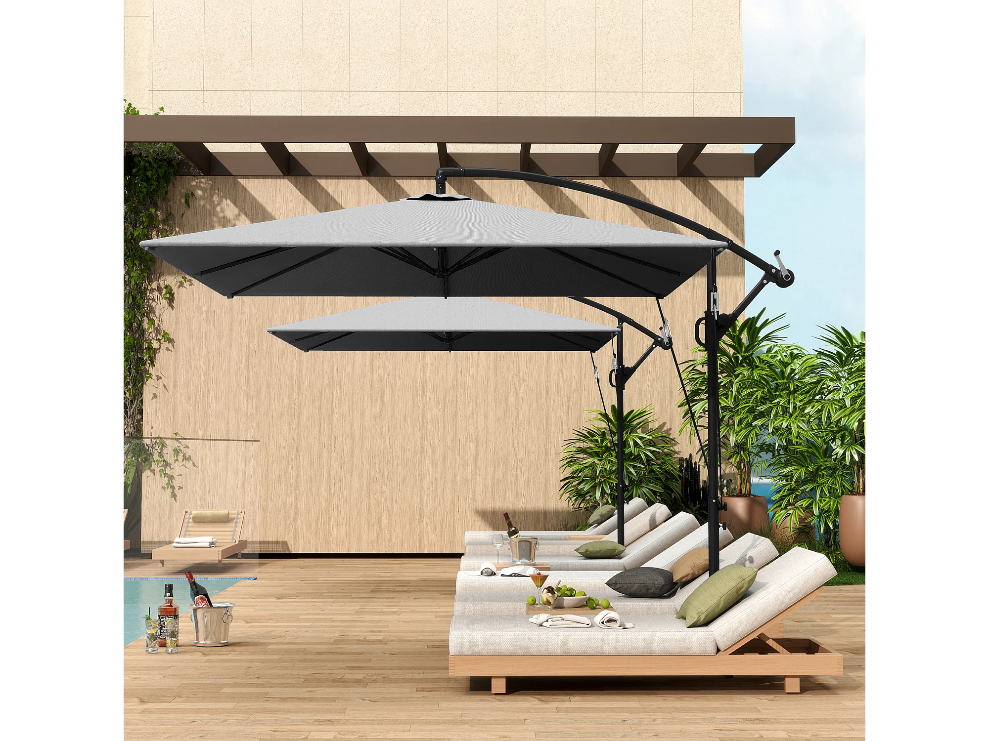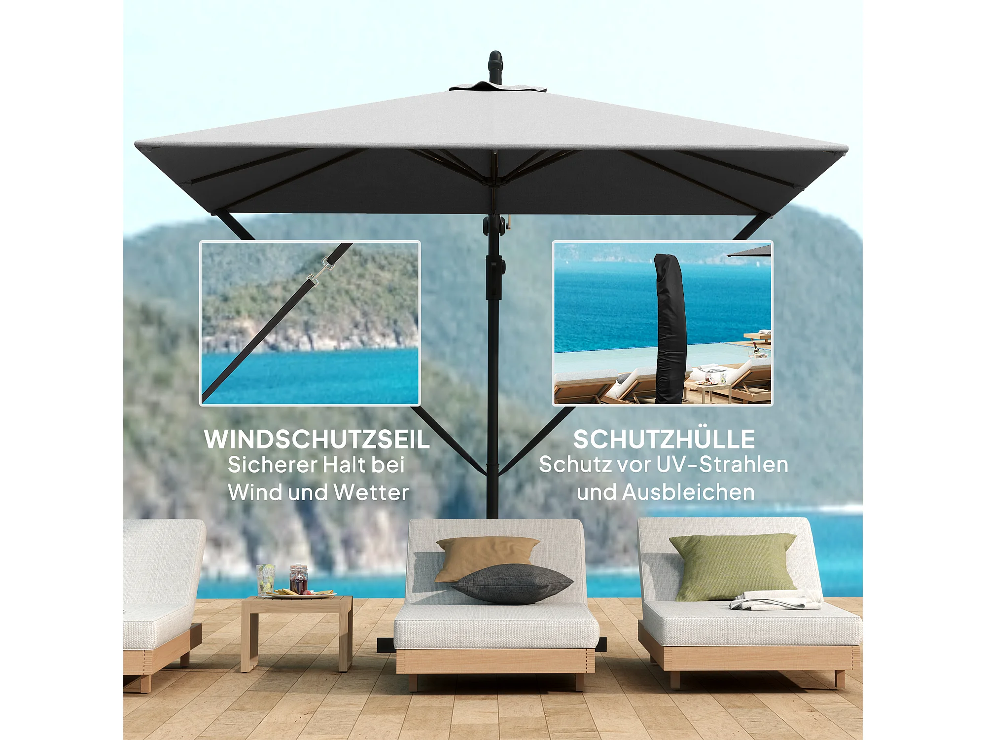 Parasol déporté 260 cm, avec UV 50+ protection, fonction inclinable, métal et polyester gris (295x250x235cm)