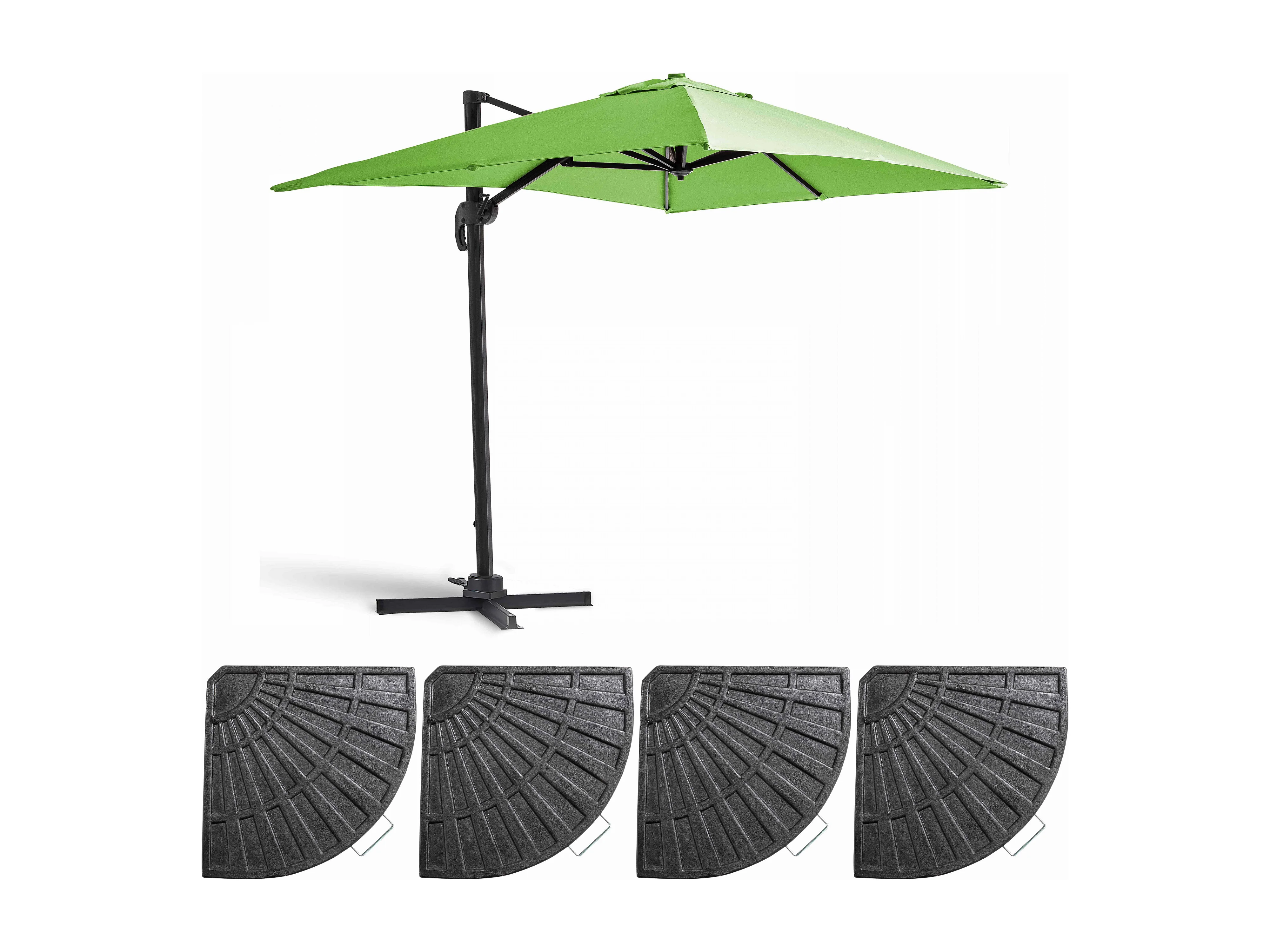 Parasol déporté 2x3 m et 4 dalles lestées aluminium vert - Amalya