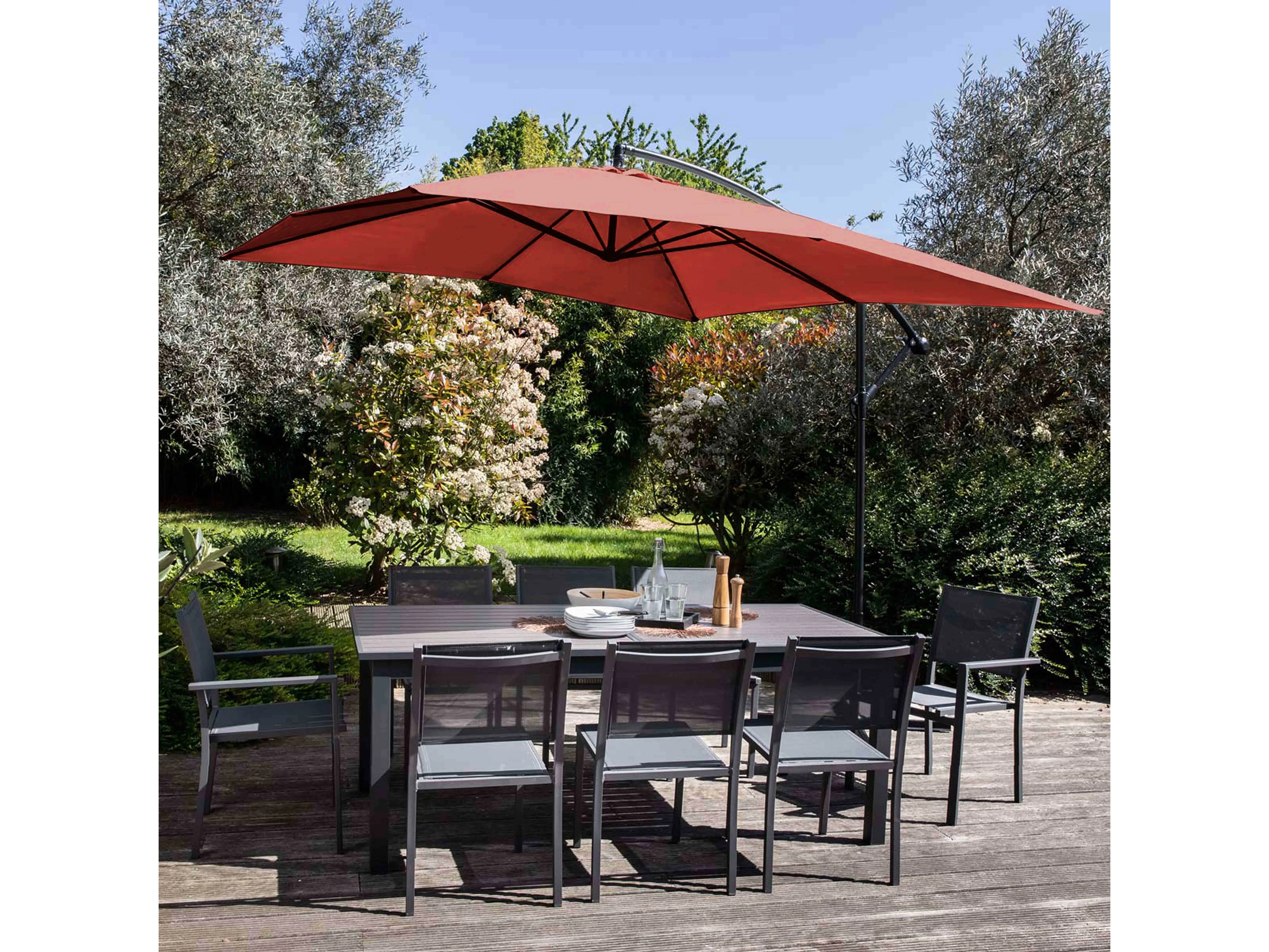 Parasol déporté 3 x 3 m et 4 dalles à lester remplisable terracotta - Genova