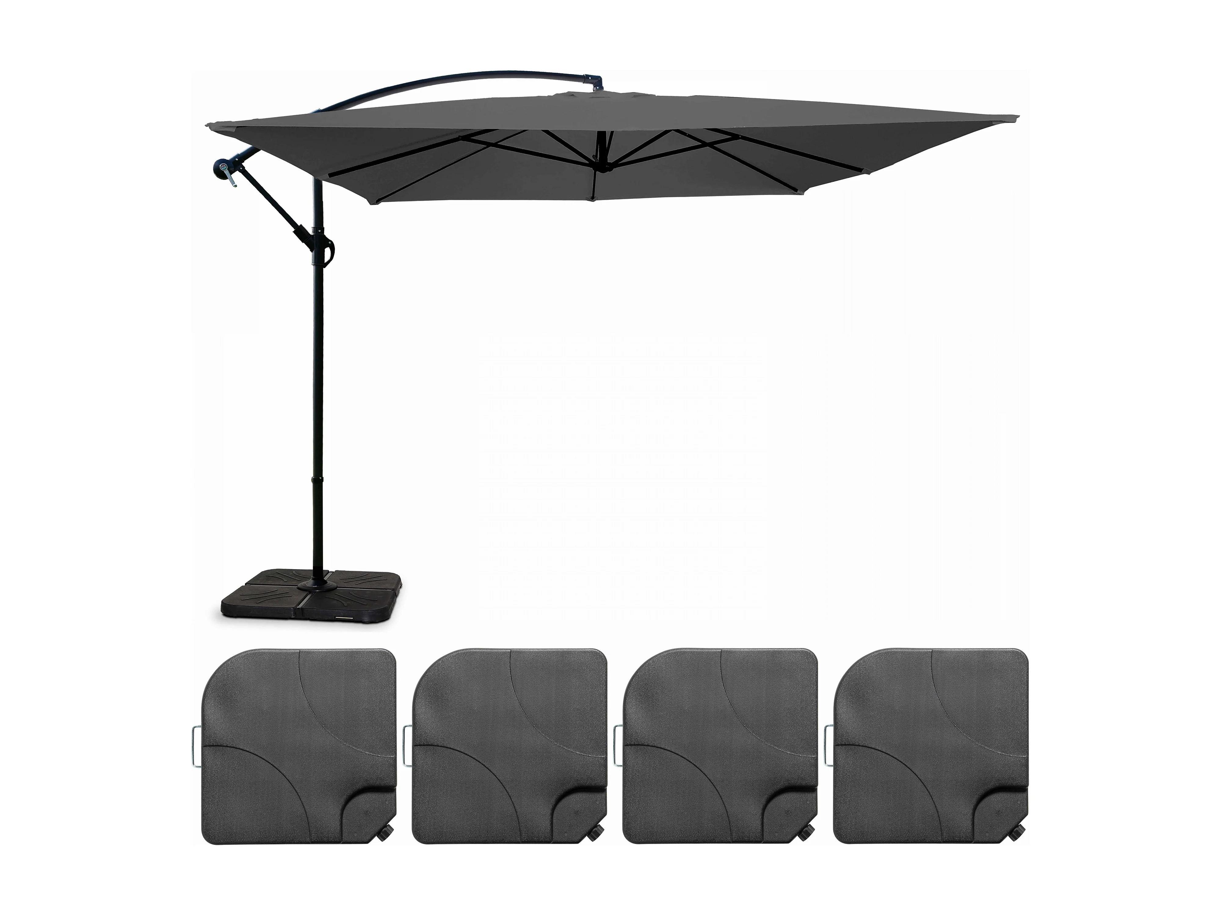 Parasol déporté 3x3m et 4 dalles à remplir acier gris - Genova