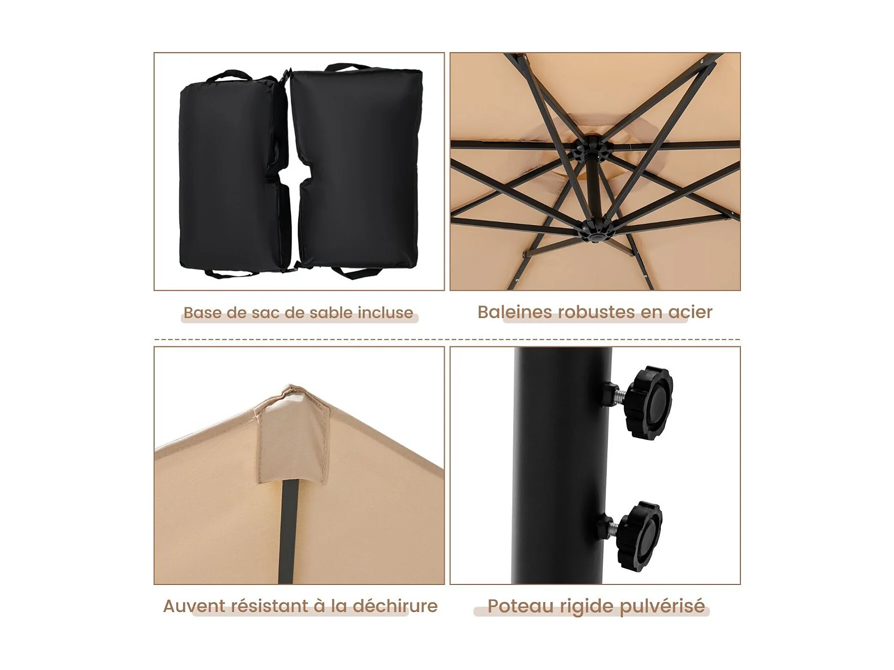 Parasol Déporté 3x3M, Grand Parasol de Jardin Extérieur Lumineux LED Solaire avec 2 Sacs de Sable, Base Croisée, Parasol Inclinable avec Manivelle, pour Balcon, Jardin, Terrasse Plage (Beige)
