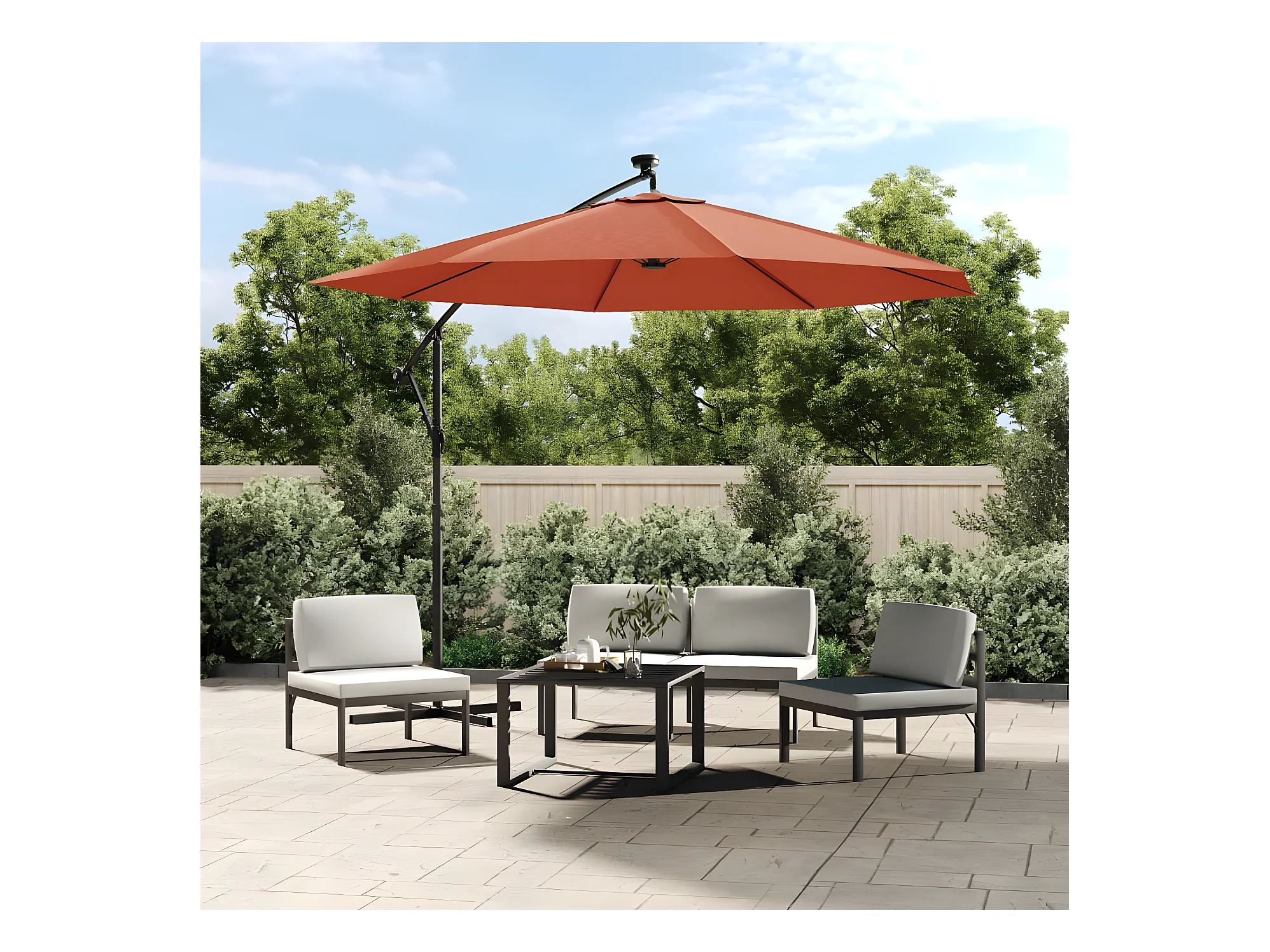 Parasol déporté à LED et mât en acier Terre cuite FR13951