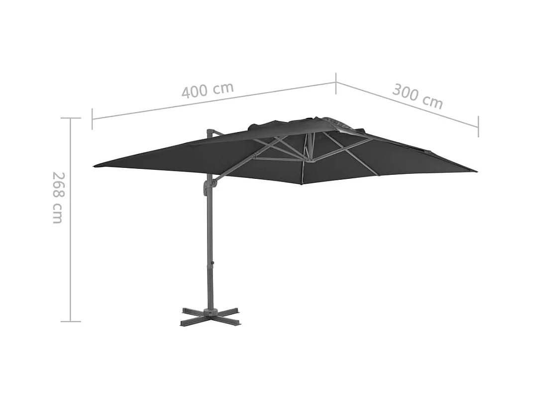 Parasol déporté avec mât en aluminium 400x300 cm anthracite