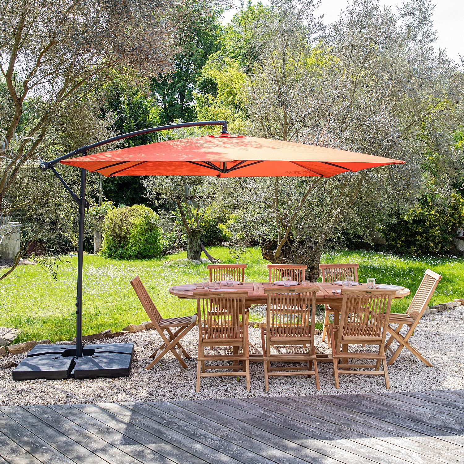Parasol déporté carré rouge 250x250x250 cm – Toile polyester 180 g/m² déperlante