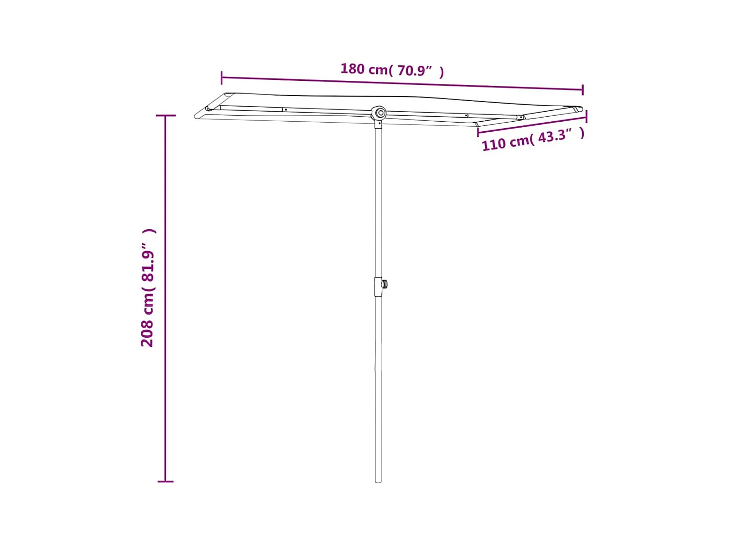 Parasol d'extérieur avec mât en aluminium 180x110 cm Vert