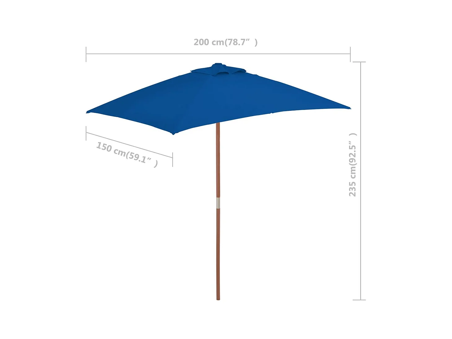Parasol d'extérieur avec mât en bois Bleu 150x200 cm