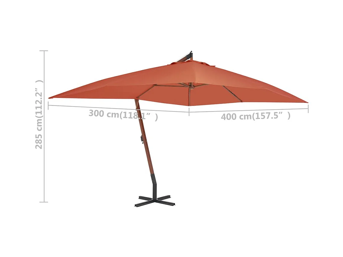 Parasol en porte-à-faux avec mât en bois 400x300 cm Terre cuite WVGQ6582