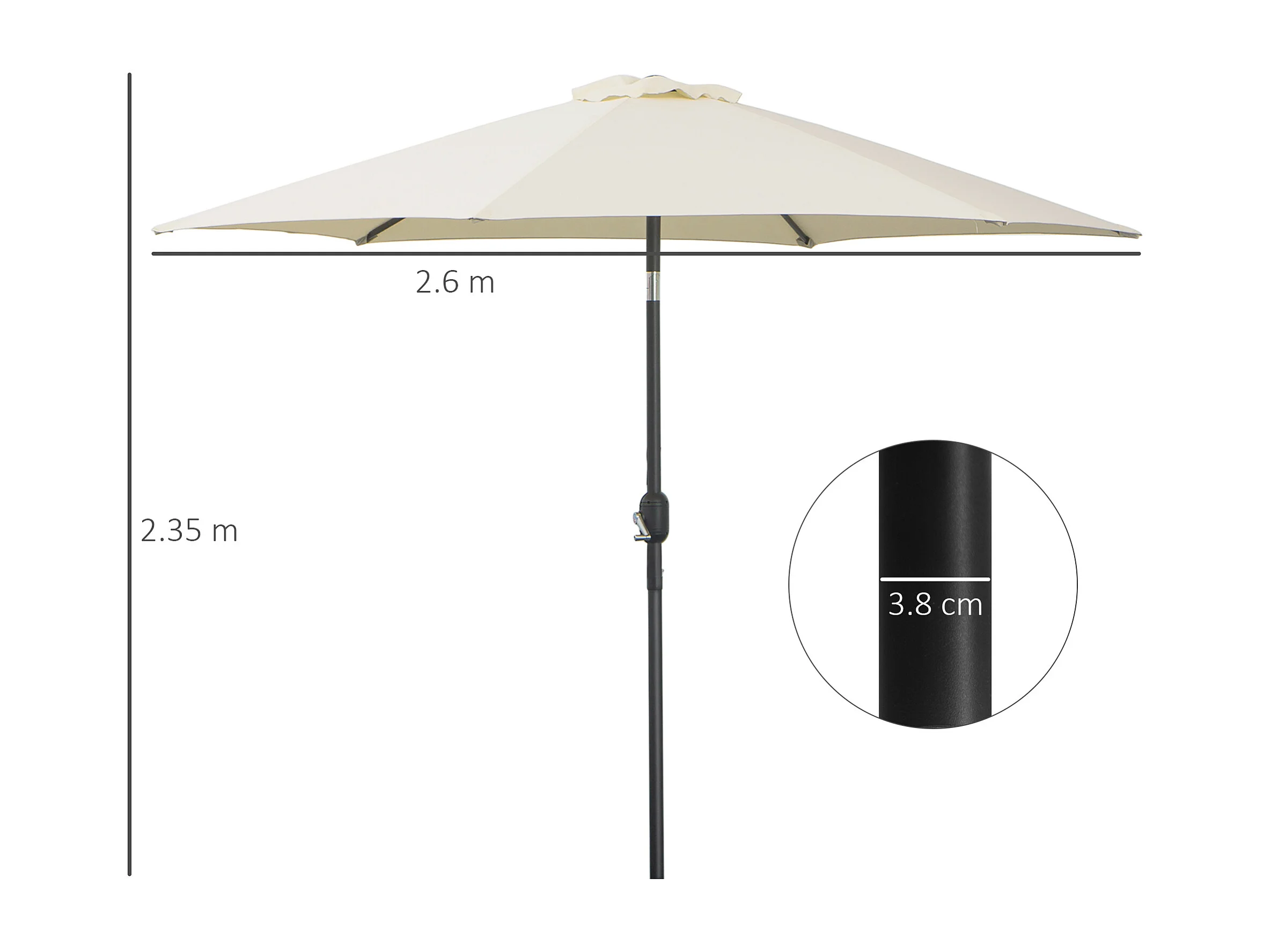 Parasol inclinable avec manivelle, aluminium, polyester 180 g/m², beige (2,6x2,6x2,35 m)