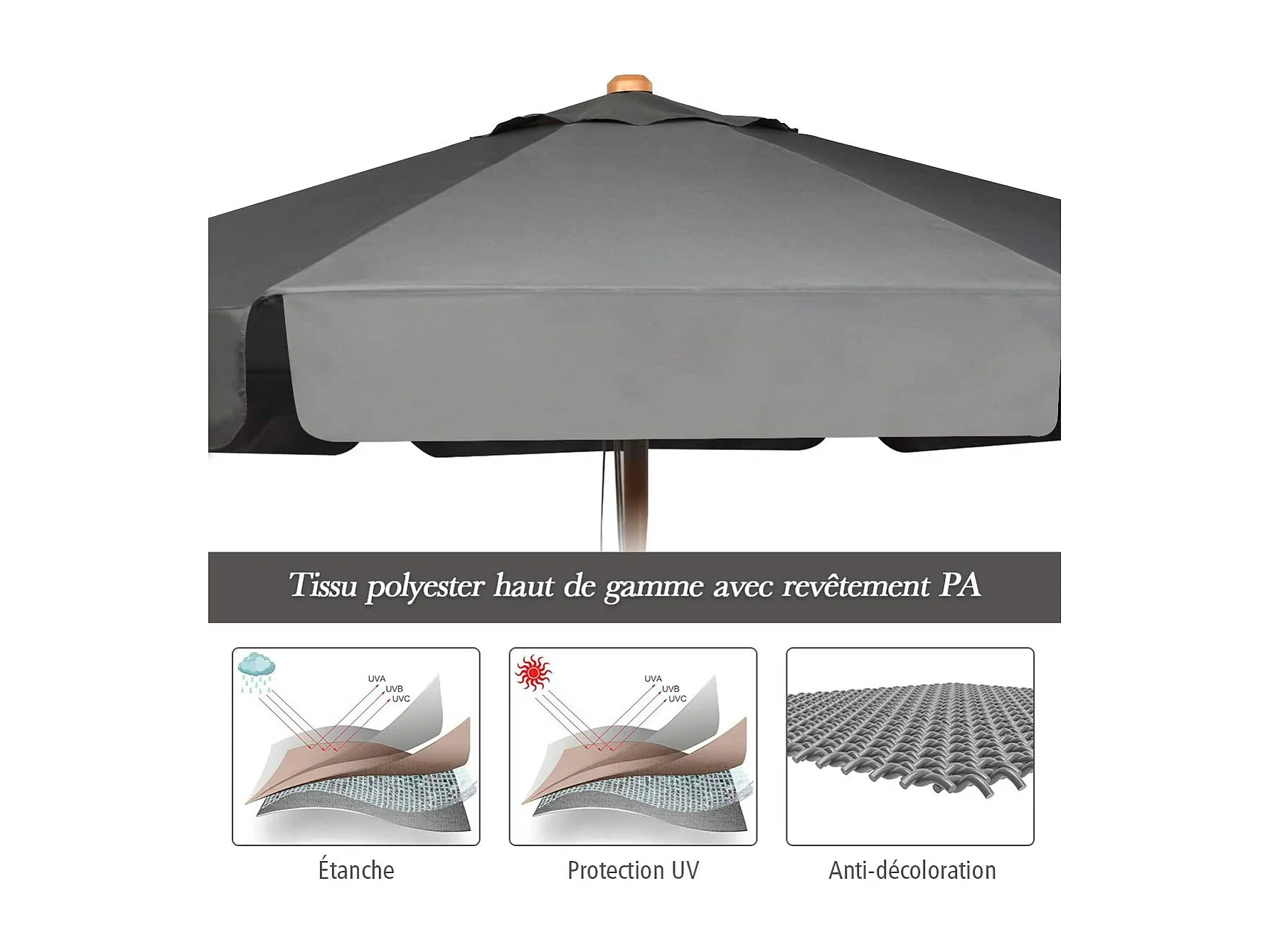 Tissu de remplacement pour parasol déporté anthracite 300 cm FR62599