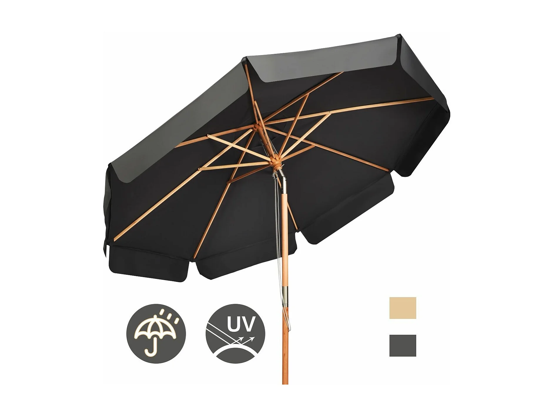 Parasol Inclinable Ø300CM avec Manivelle Anti-UV,Protection Solaire Toile Polyester Imperméable, Gris