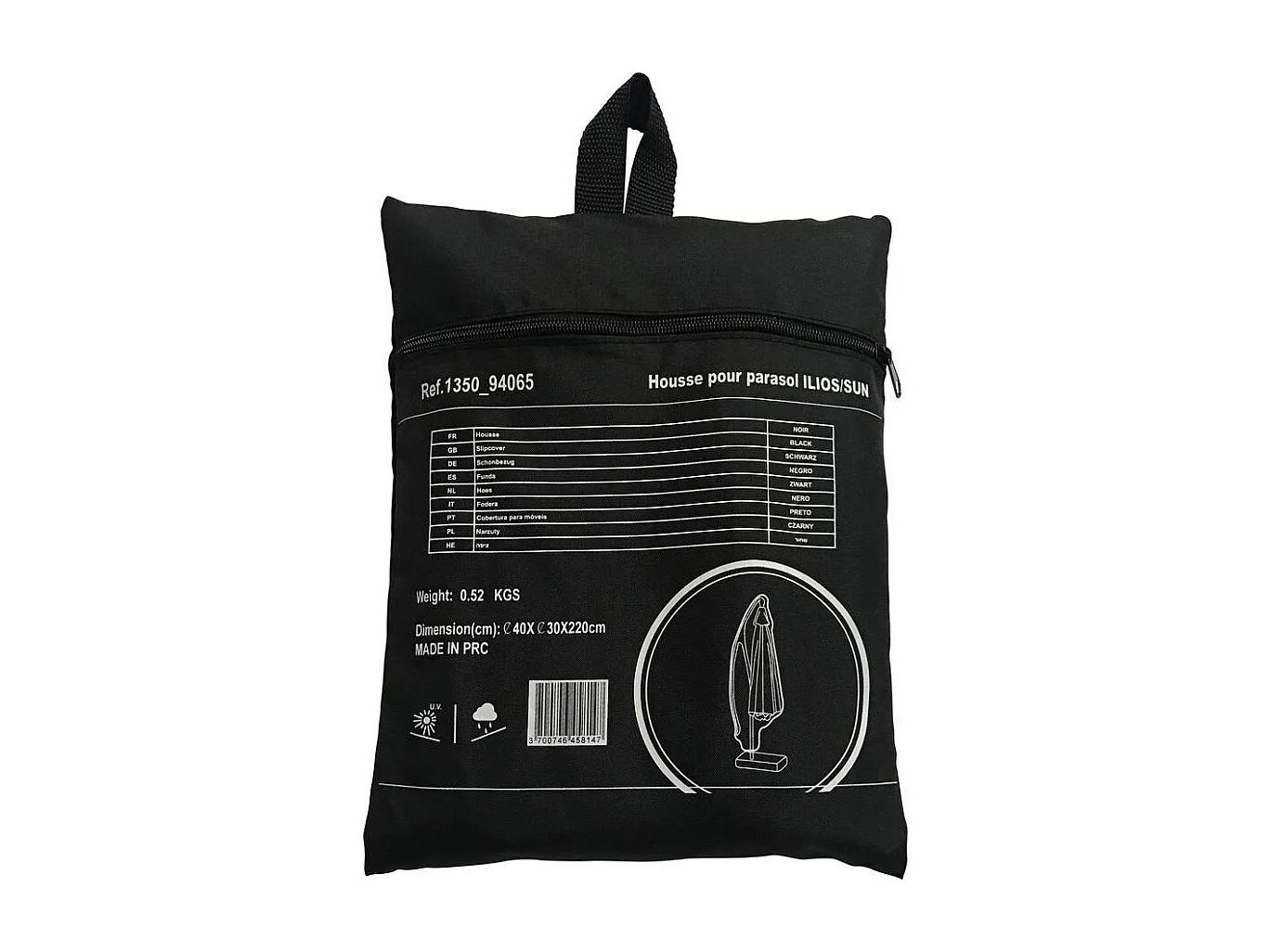 Parasol jardin déporté Alu "Sun 3" - Carré - 3 x 3 m - Gris + housse de protection