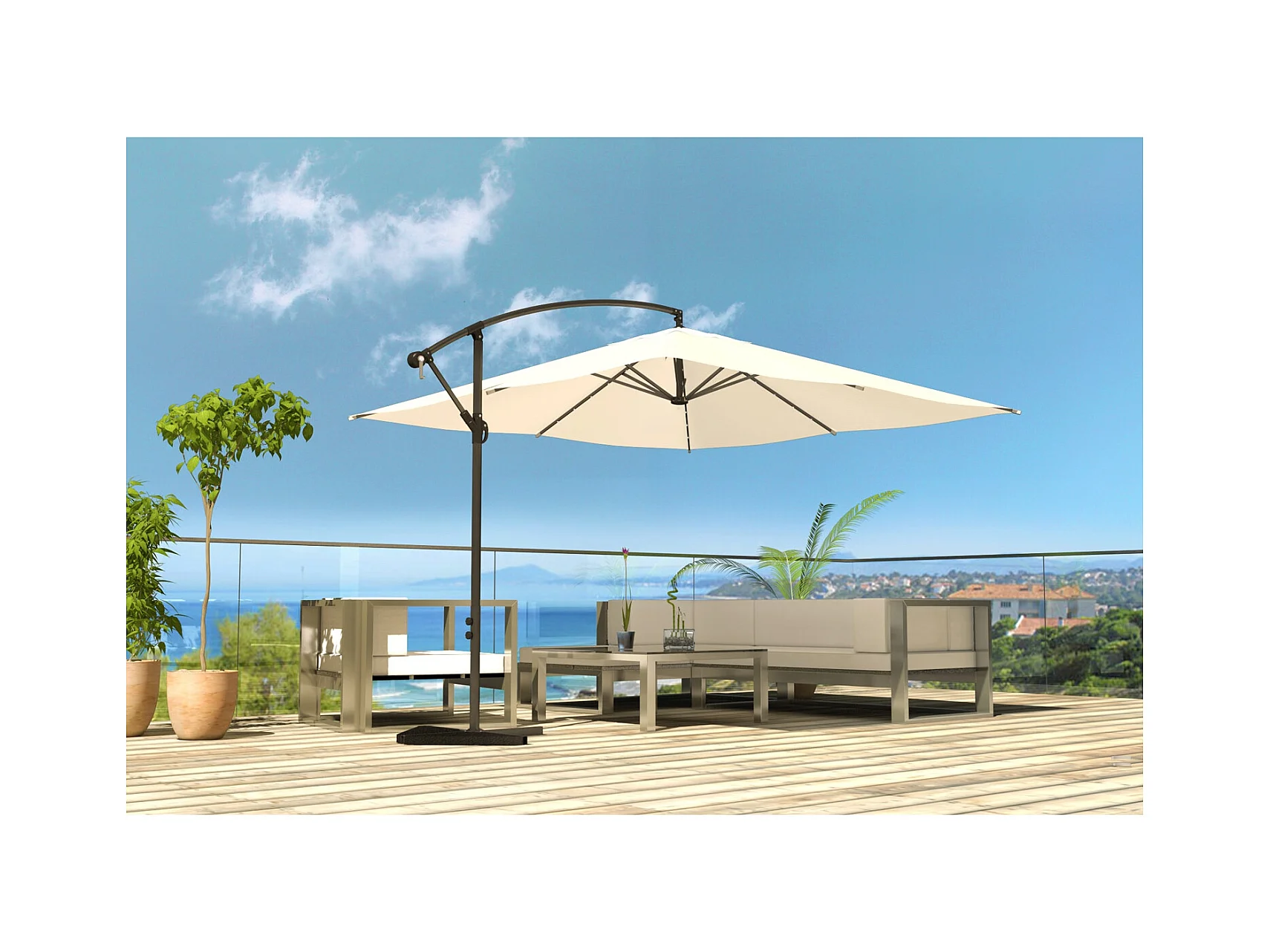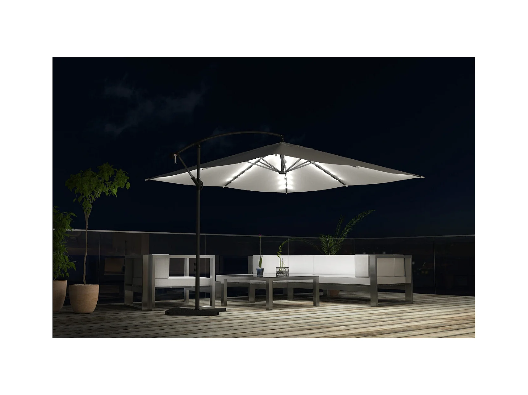 Parasol Néon LED déporté 3 x 3 m écru SOLENZARA