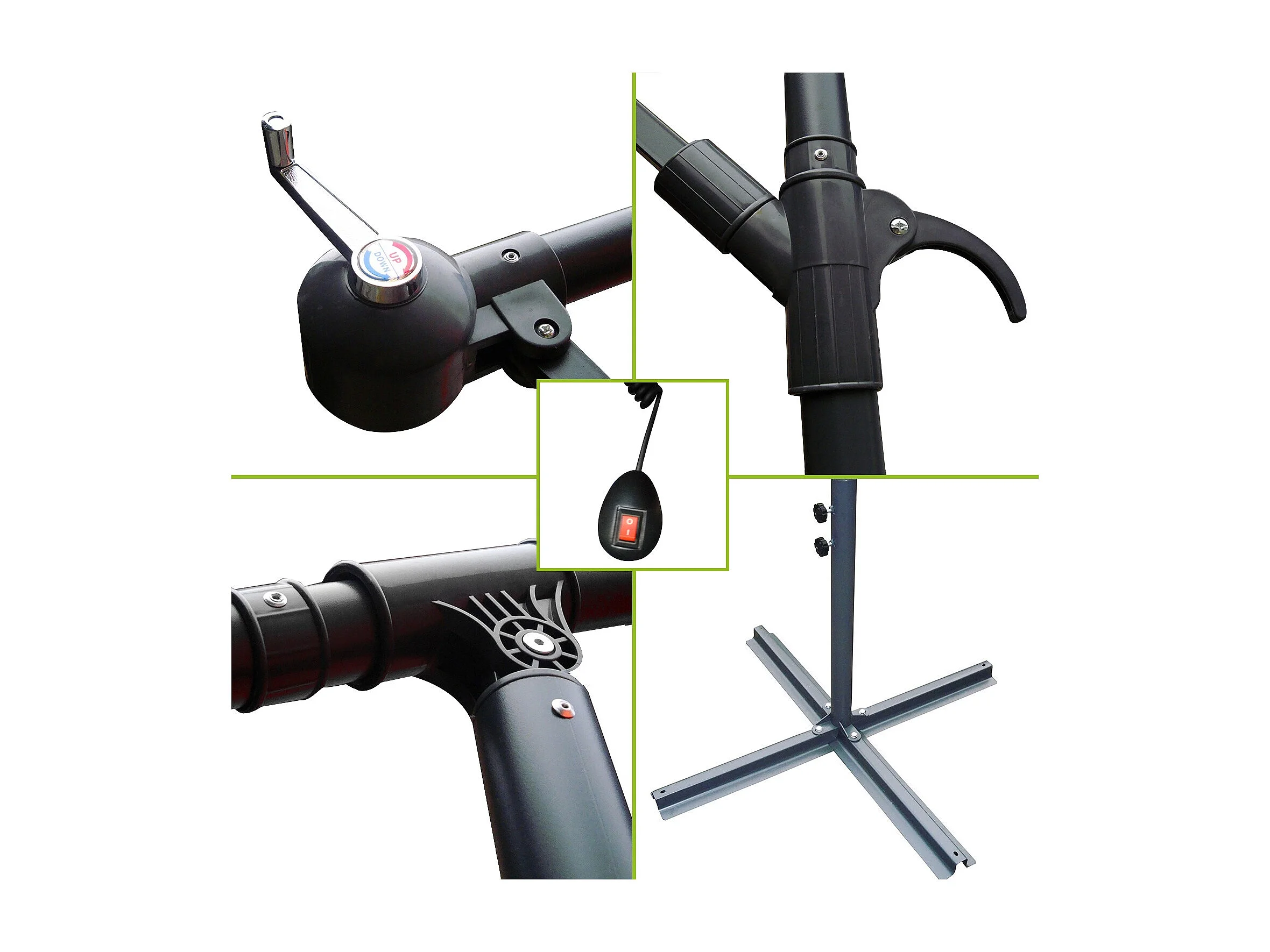 Parasol déporté avec mât et lumières LED Sable 300 cm FR65484