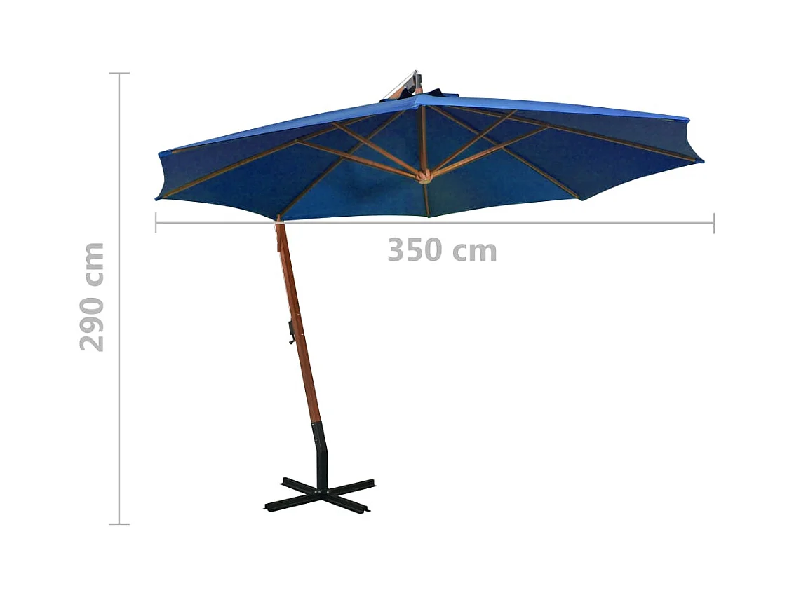Parasol suspendu avec mât Bleu azuré 3,5x2,9 m Bois de sapin