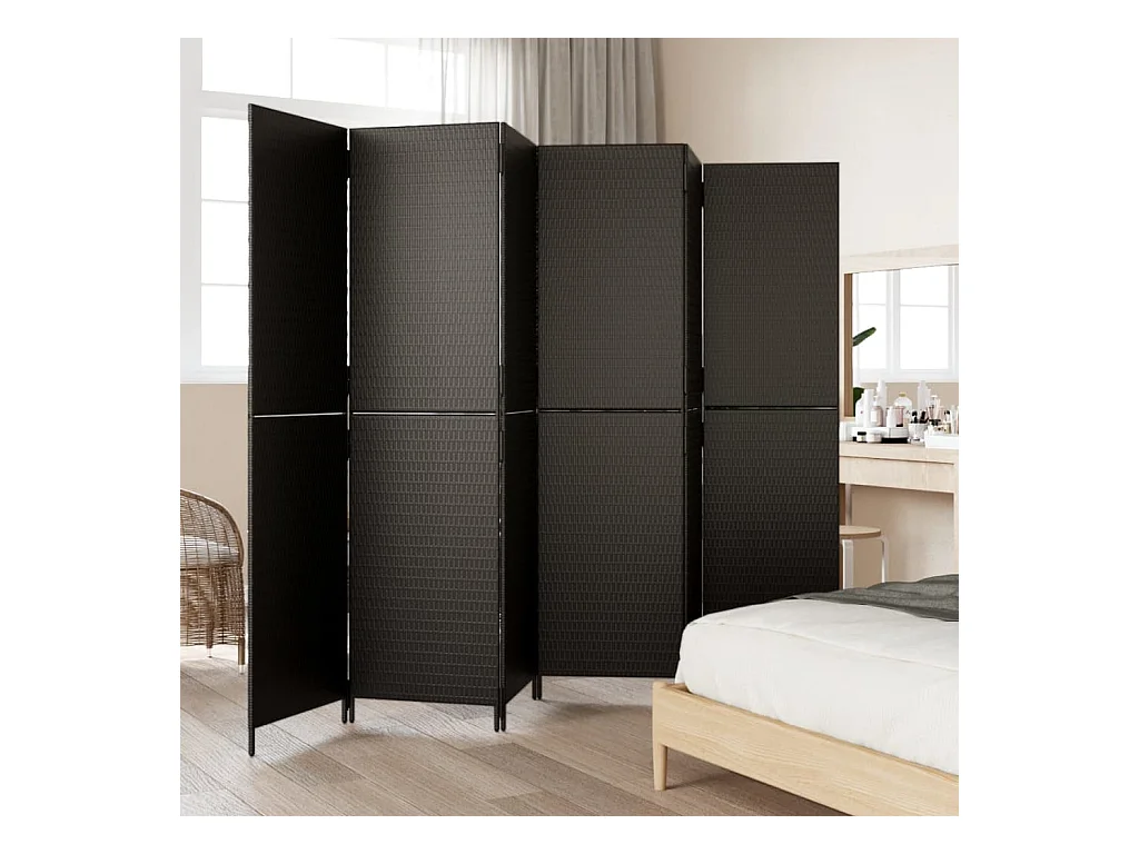 Paravent - Cloison de séparation 4 panneaux noir résine tressée FR94411