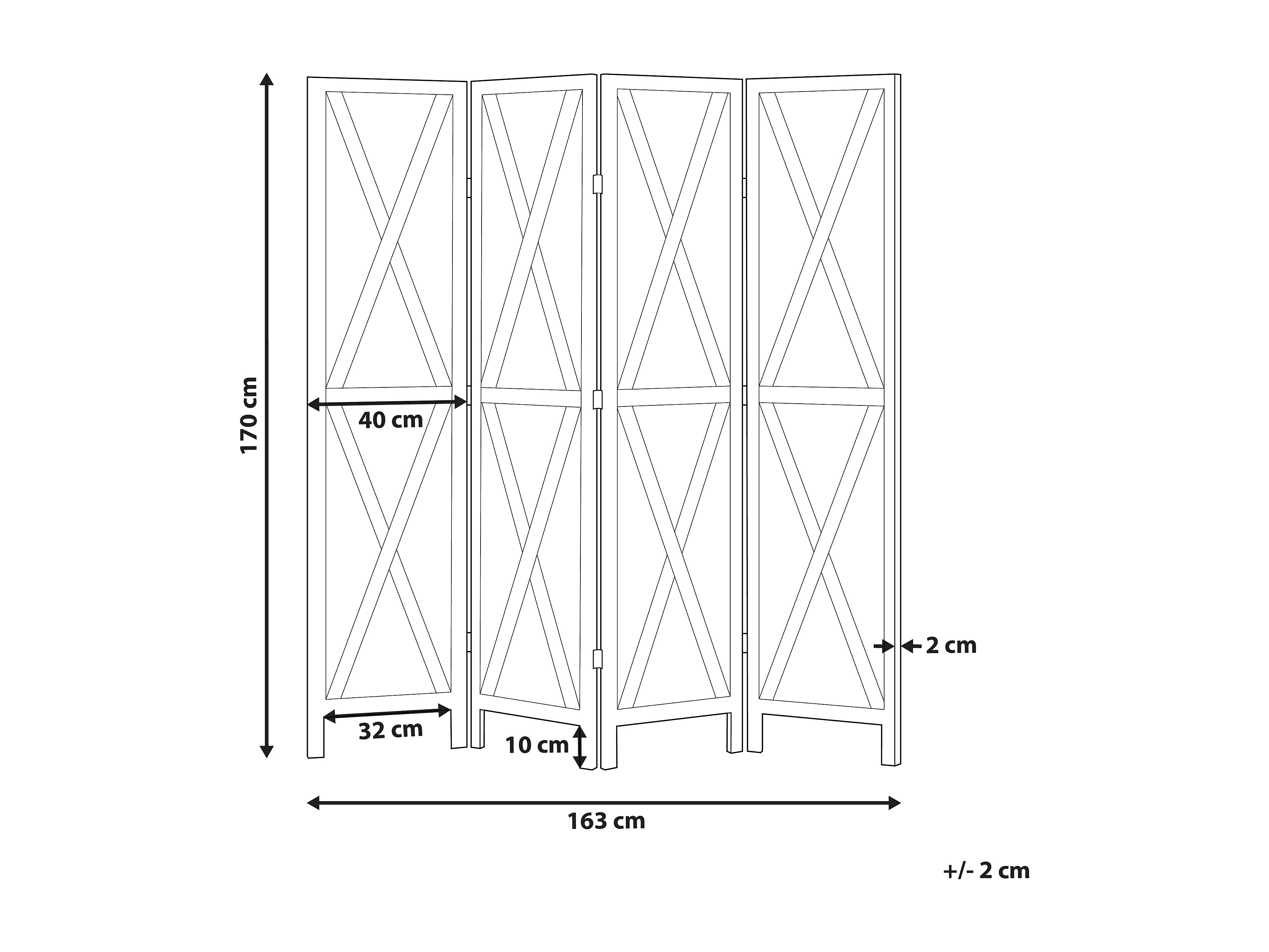 Cloison de séparation pliable 4 panneaux 160x170 cm