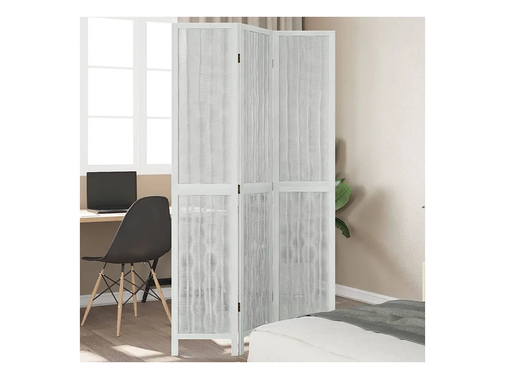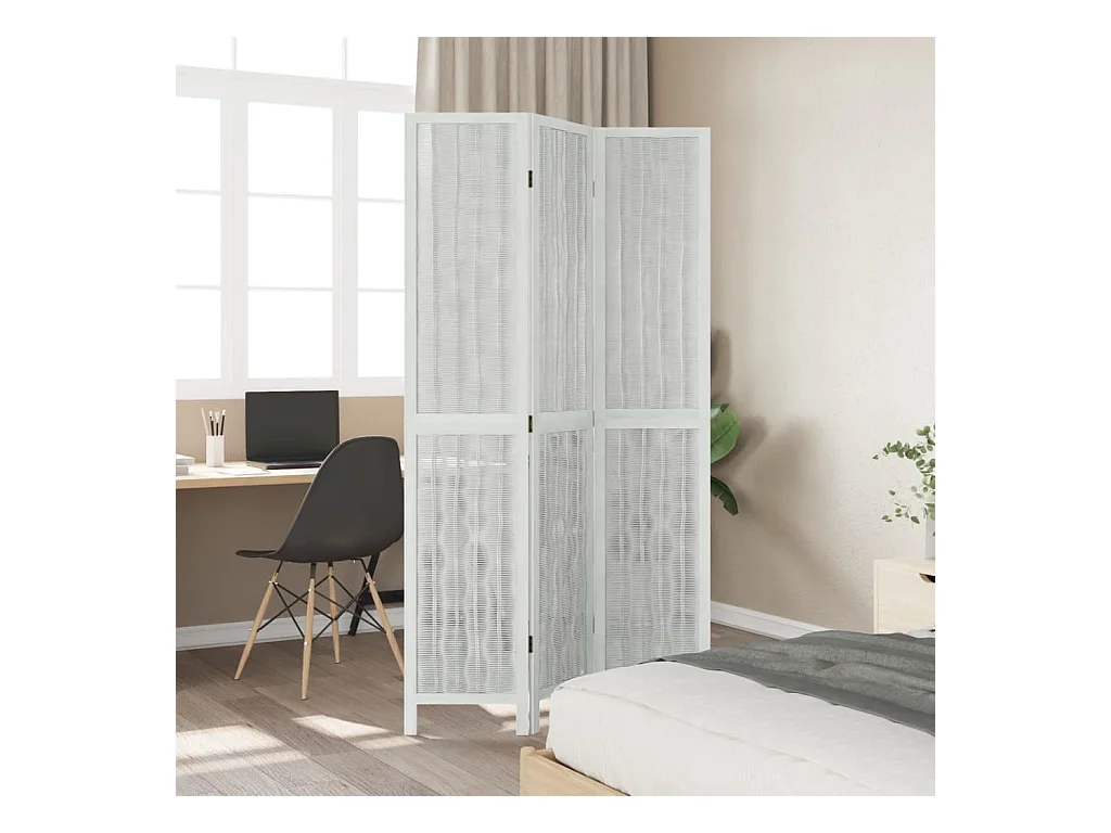 Paravent - Cloison de séparation 3 panneaux blanc bois de paulownia massif FR44633