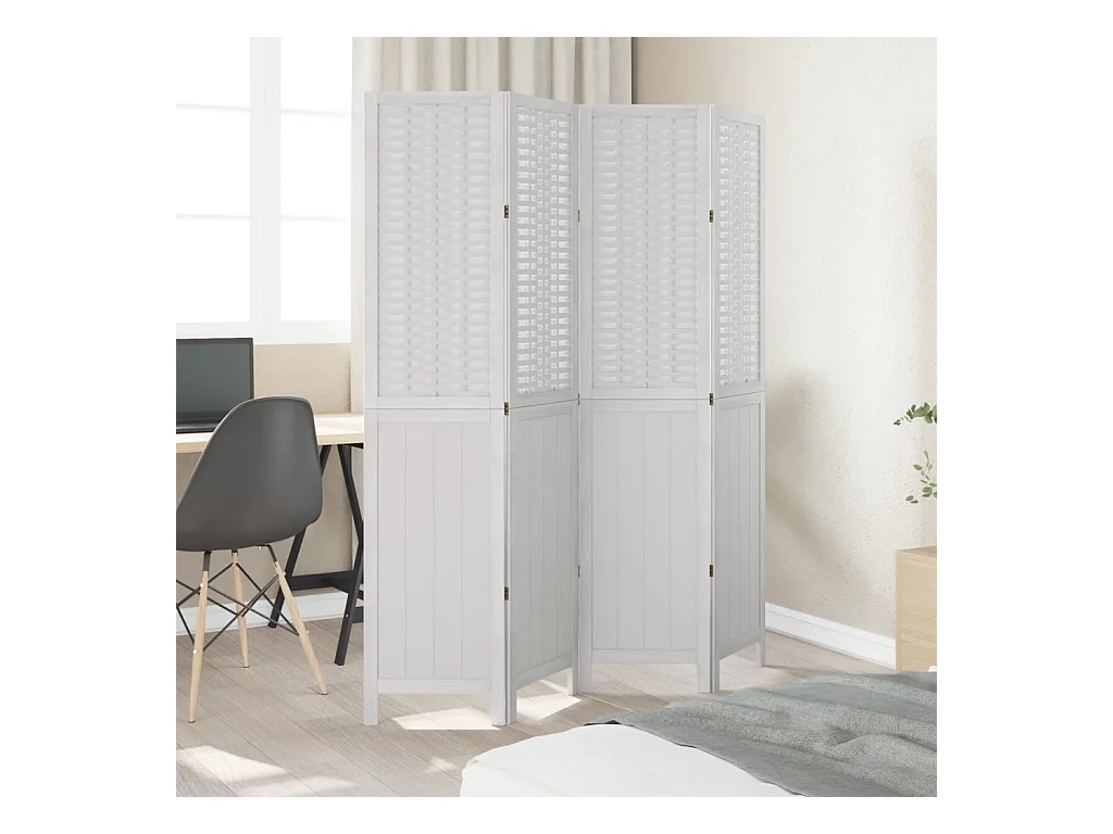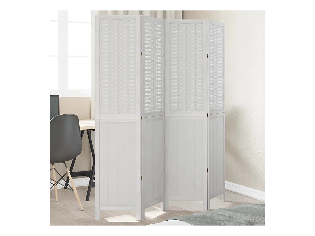 Paravent - Cloison de séparation 4 panneaux blanc bois de paulownia massif FR67578