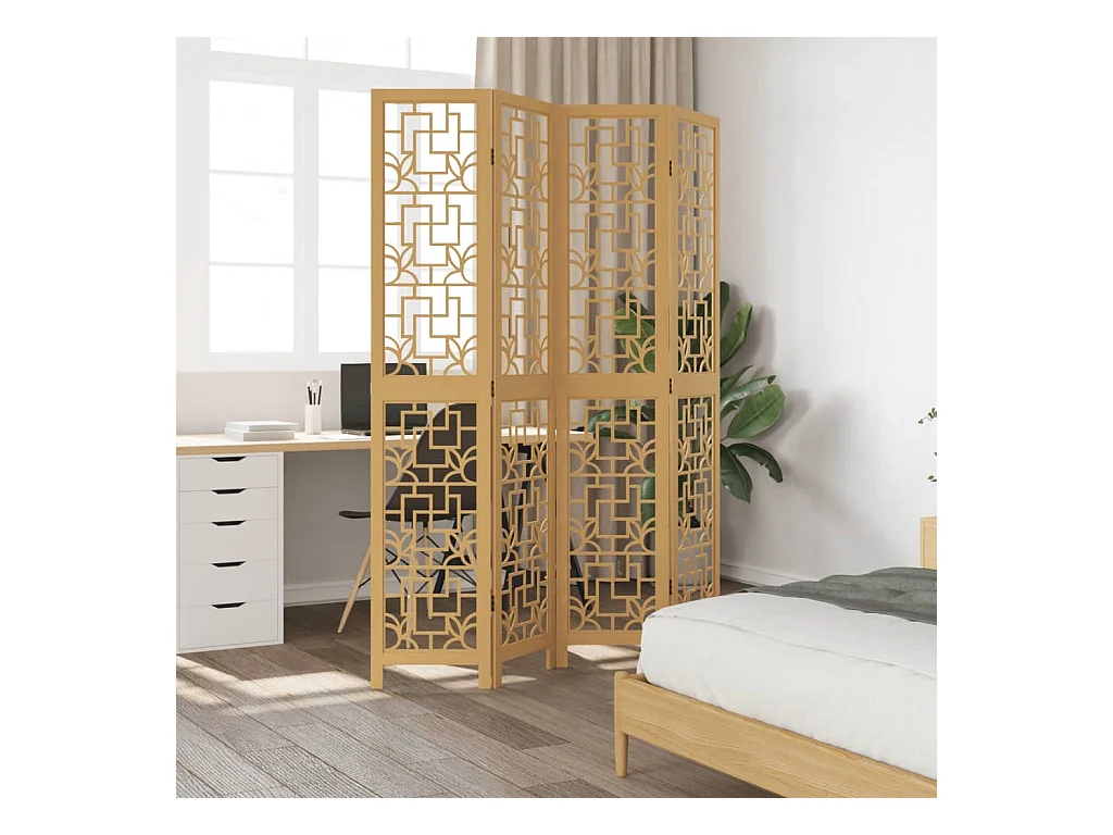 Paravent - Cloison de séparation 4 panneaux marron bois paulownia massif FR22346