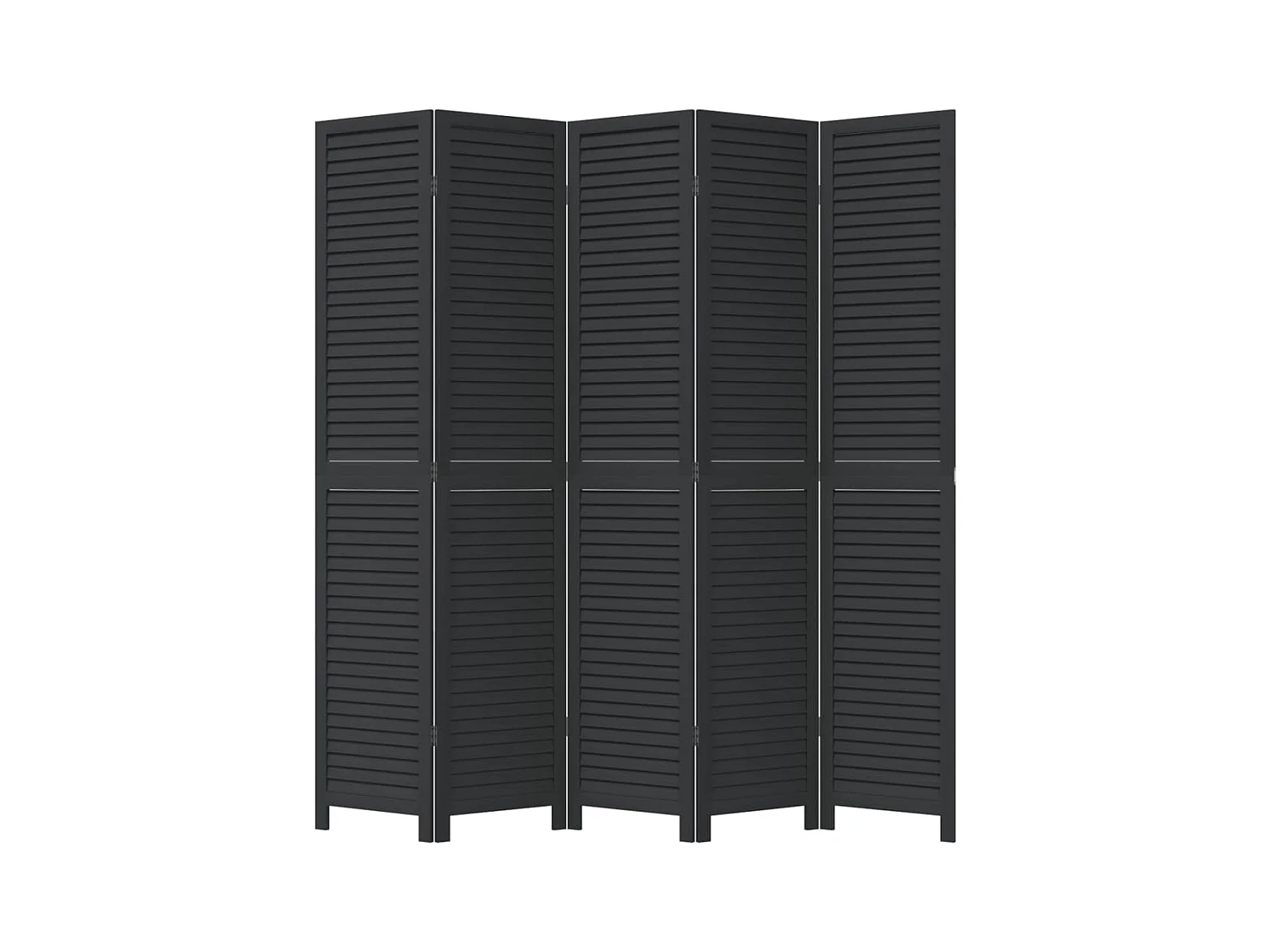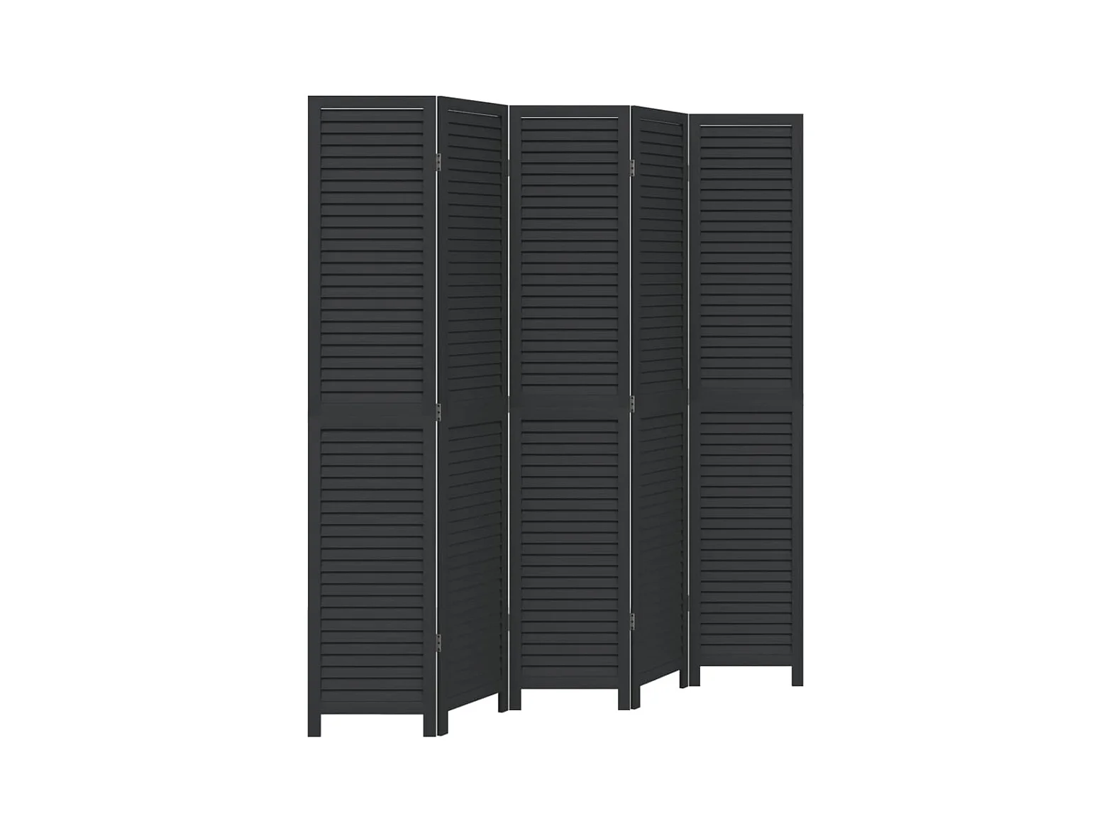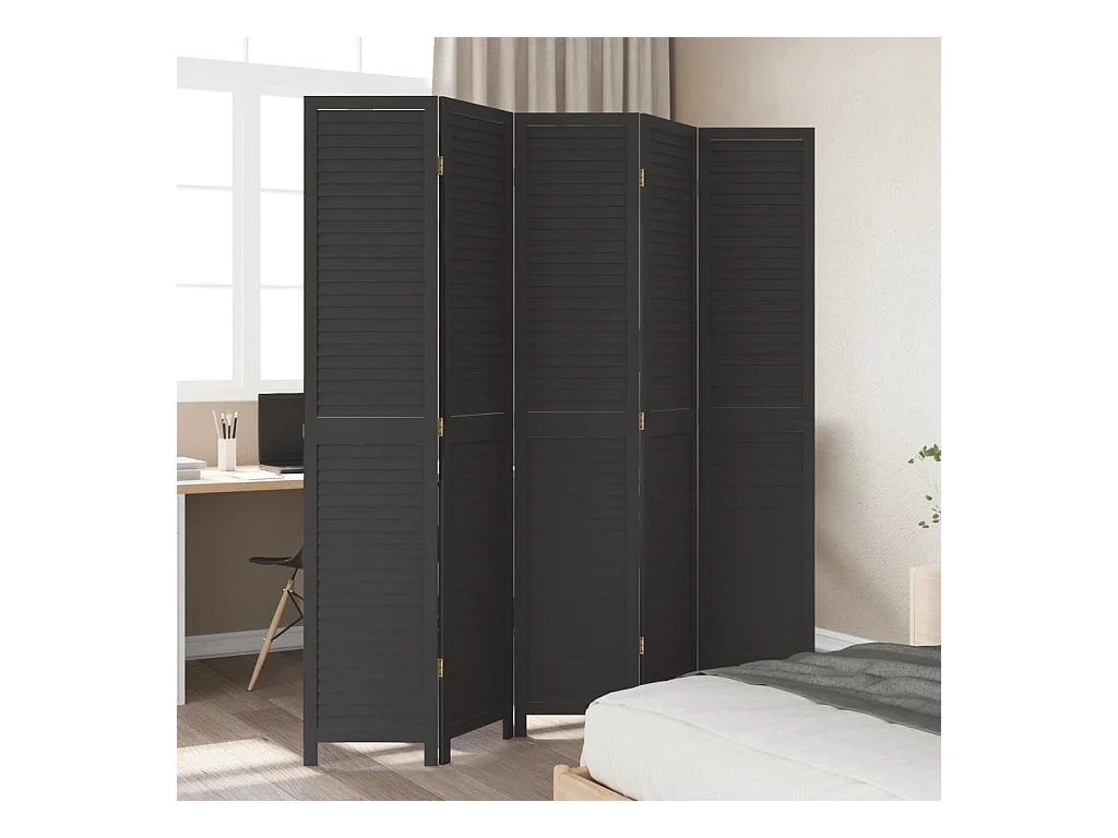 Cloison de séparation 5 panneaux noir bois de paulownia massif